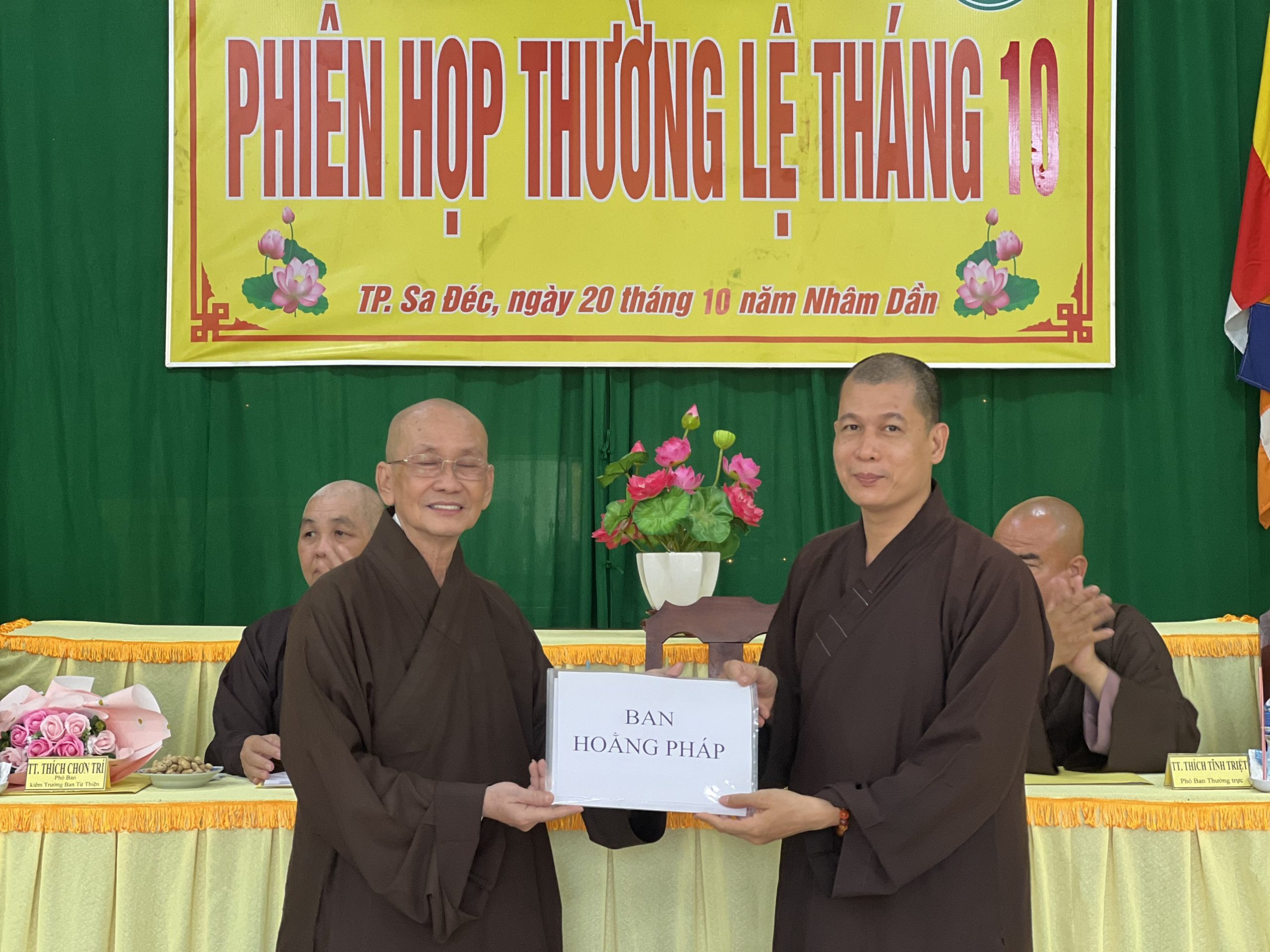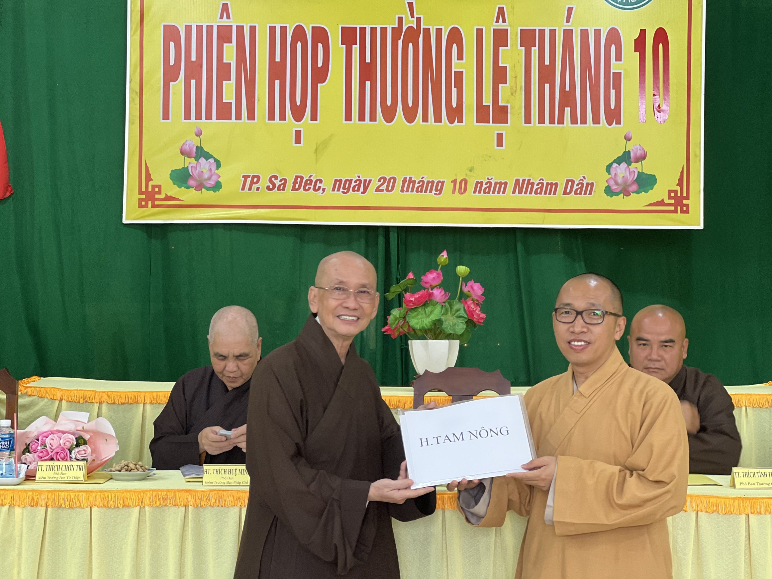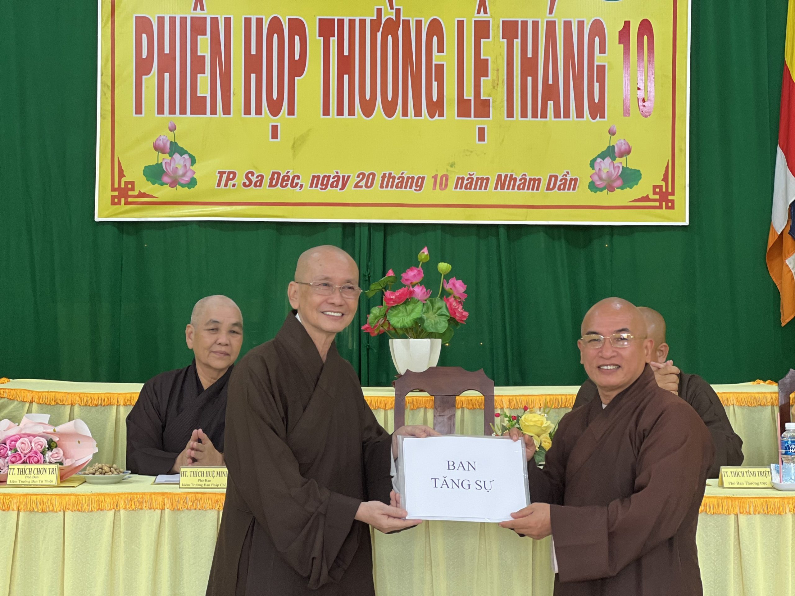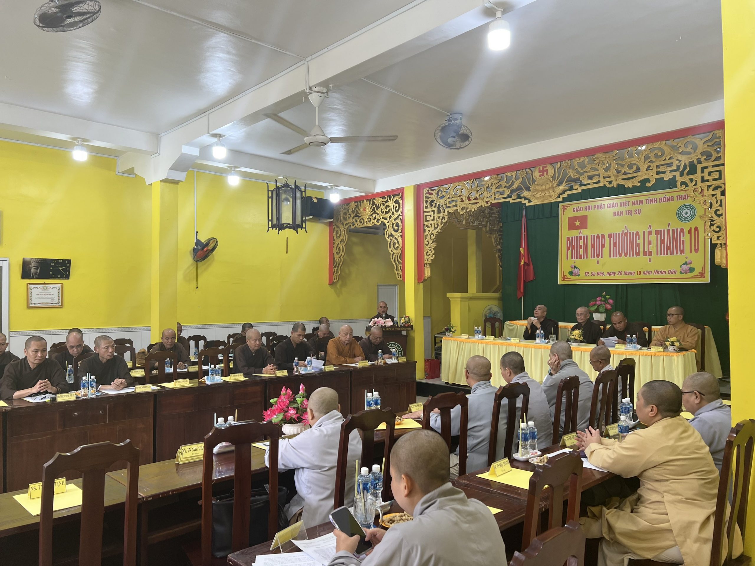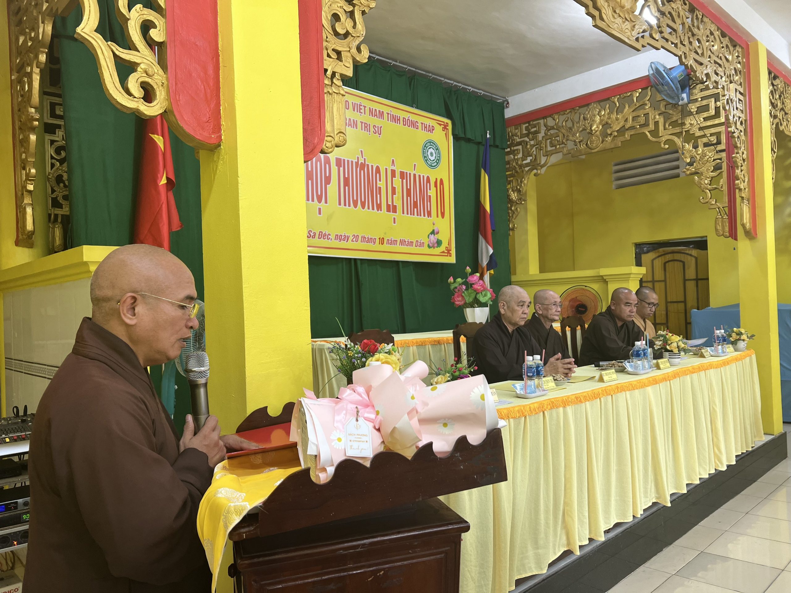 Hòa thượng Thích Chơn Minh - Ủy viên Hội đồng Trị sự, Trưởng ban Trị sự GHPGVN tỉnh Đồng Tháp chủ toạ và điều hành phiên họp định kỳ tháng 10 của Ban Trị sự với nhiều công tác Phật sự trong tháng qua.