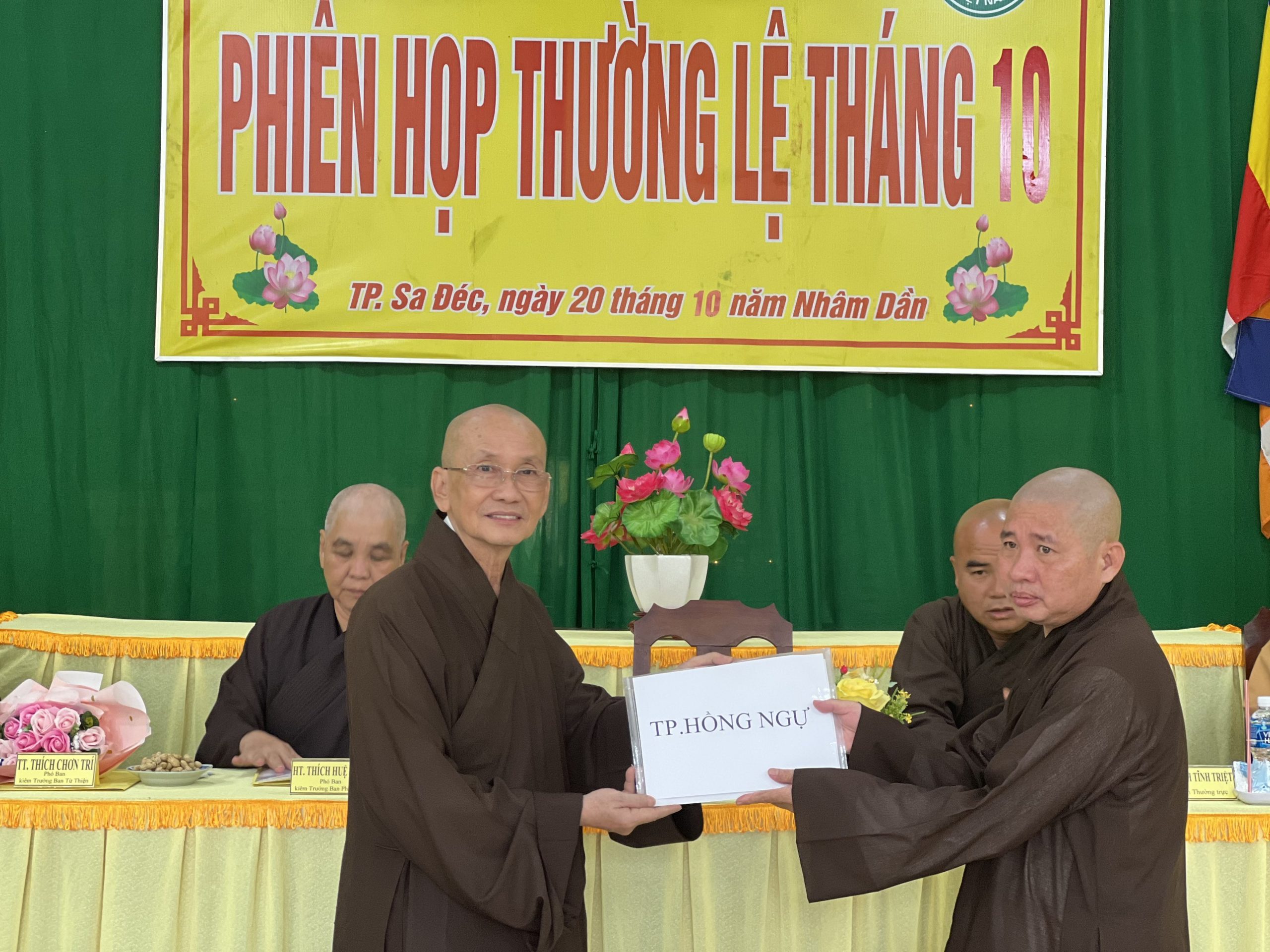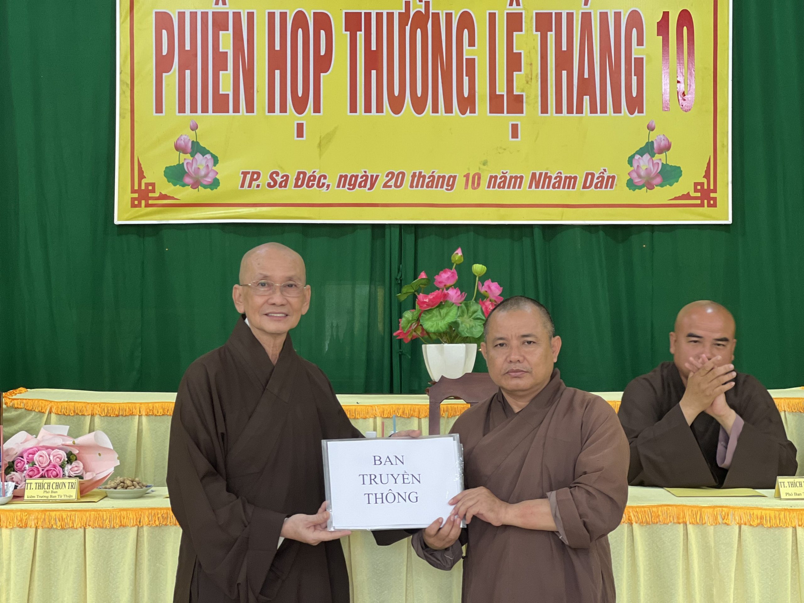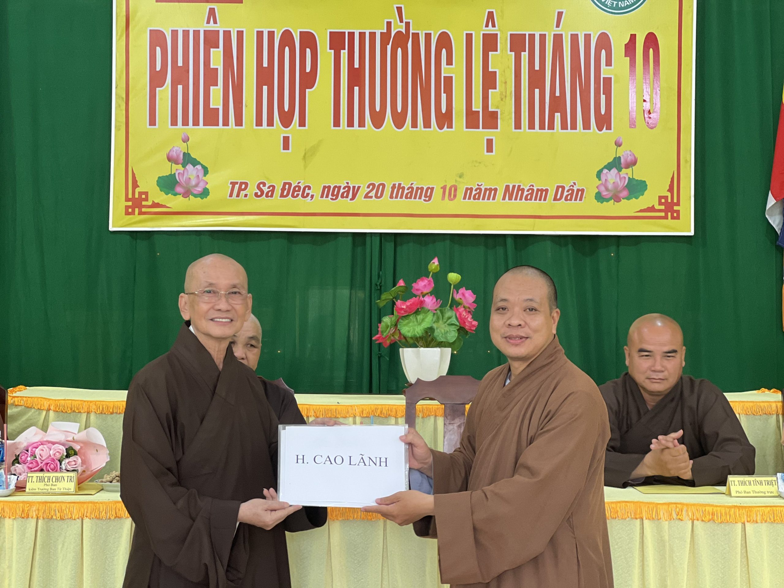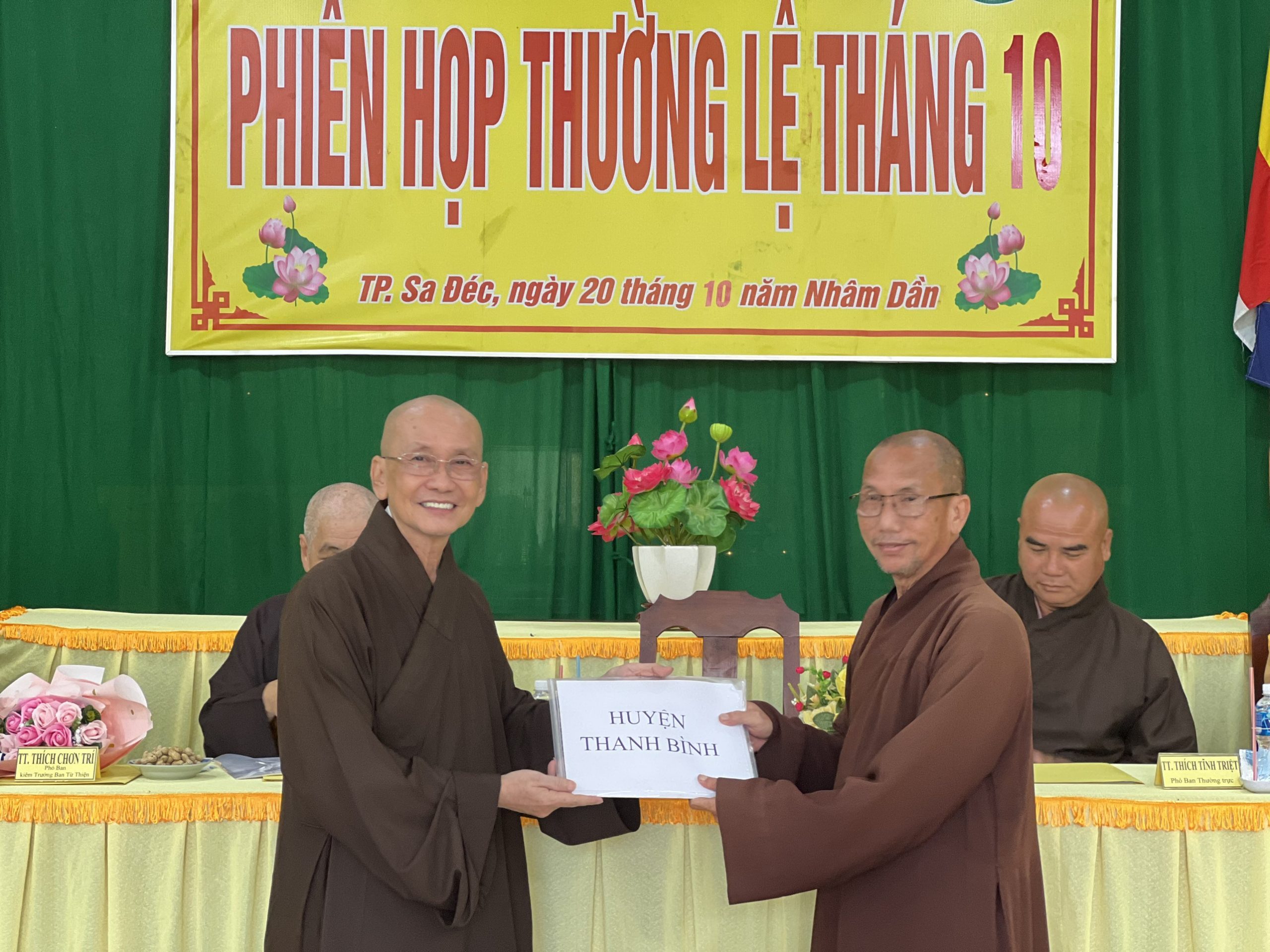 Hòa thượng Thích Chơn Minh - Ủy viên Hội đồng Trị sự, Trưởng ban Trị sự GHPGVN tỉnh Đồng Tháp chủ toạ và điều hành phiên họp định kỳ tháng 10 của Ban Trị sự với nhiều công tác Phật sự trong tháng qua.