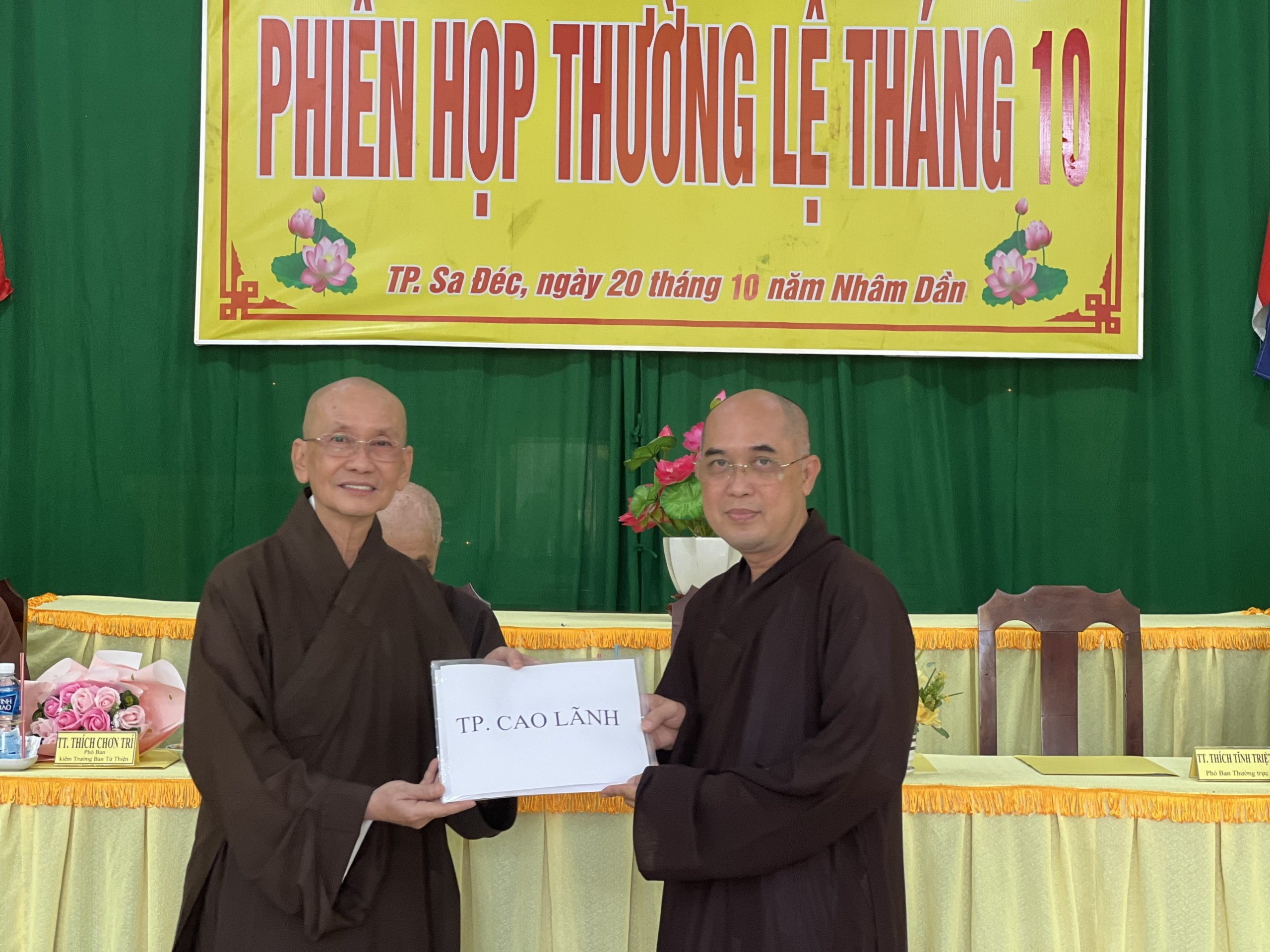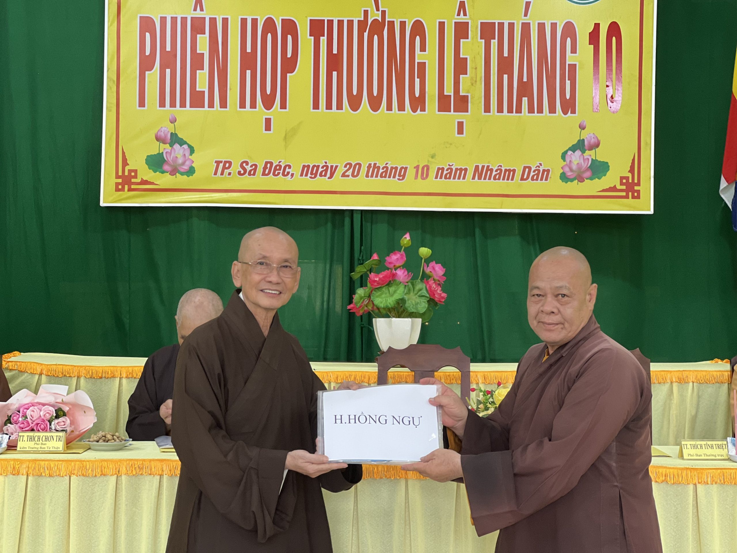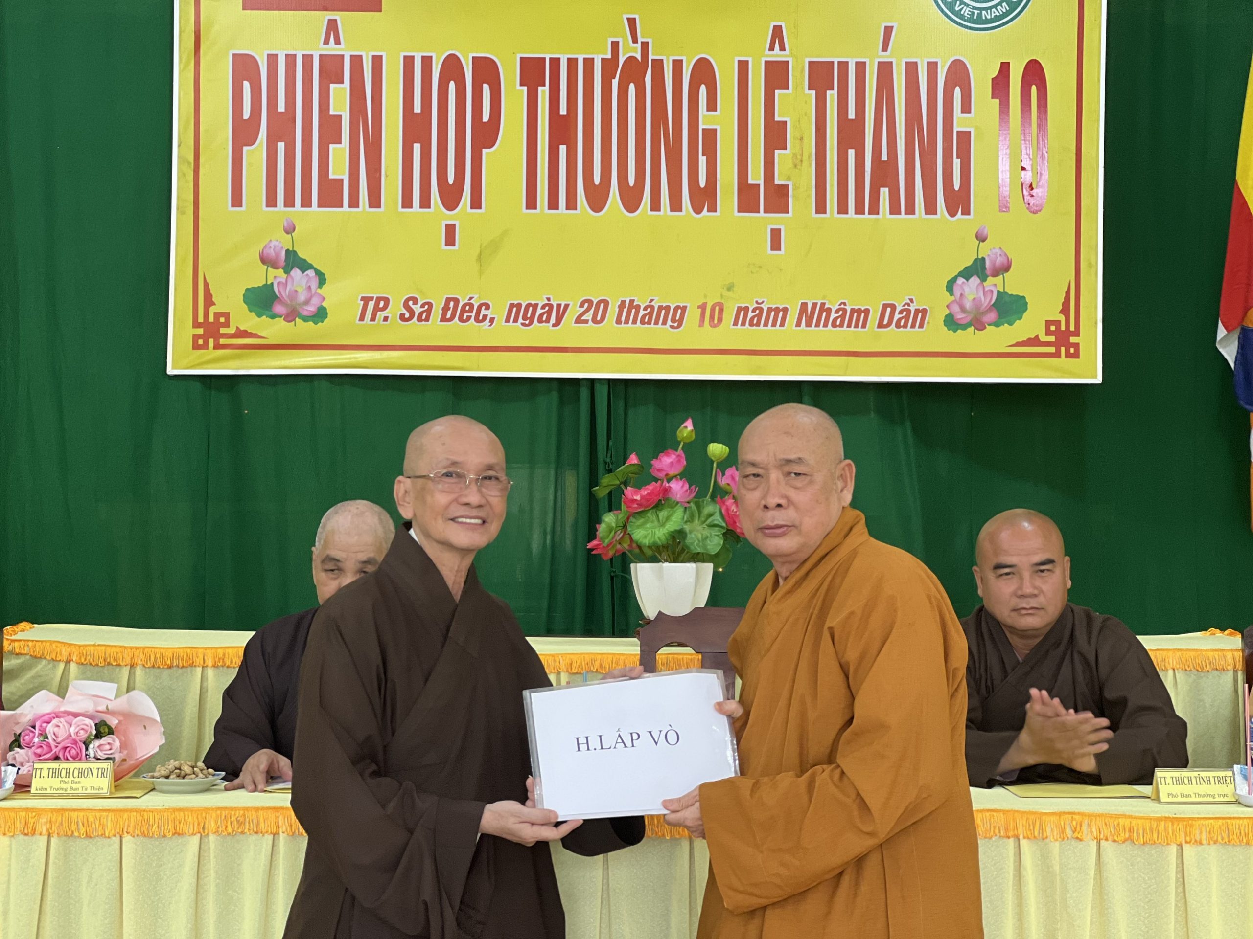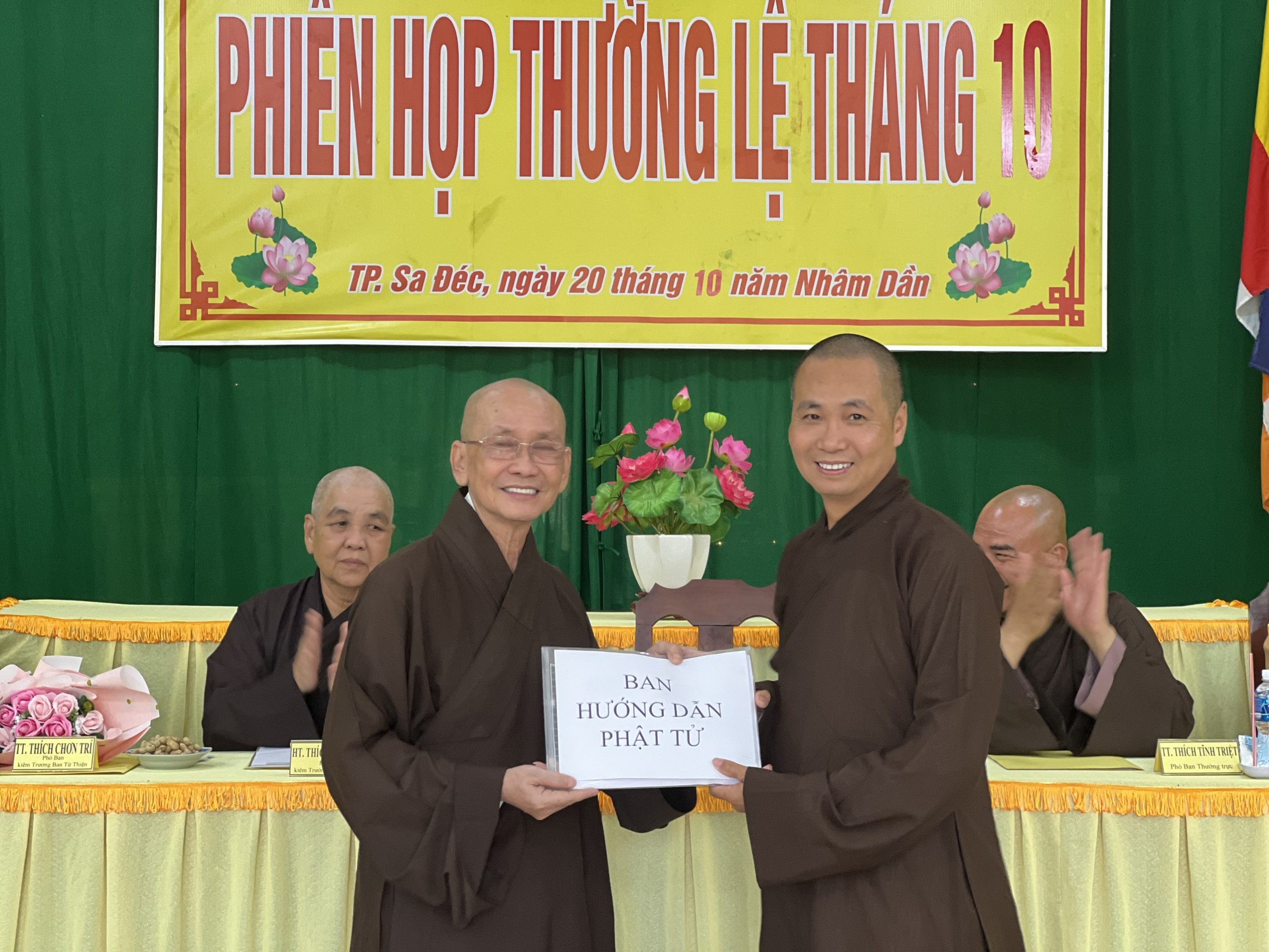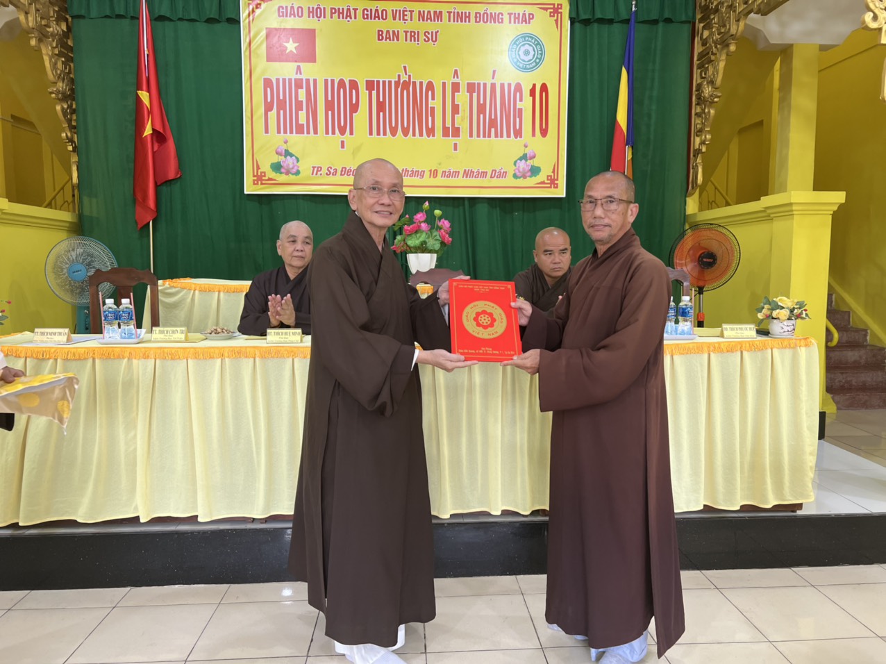 Hòa thượng Thích Chơn Minh - Ủy viên Hội đồng Trị sự, Trưởng ban Trị sự GHPGVN tỉnh Đồng Tháp chủ toạ và điều hành phiên họp định kỳ tháng 10 của Ban Trị sự với nhiều công tác Phật sự trong tháng qua.