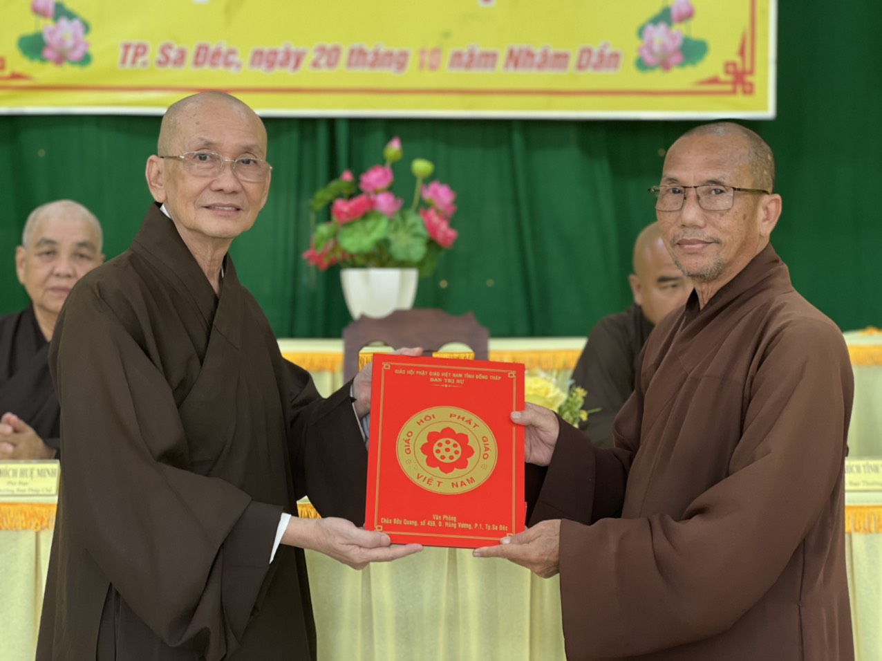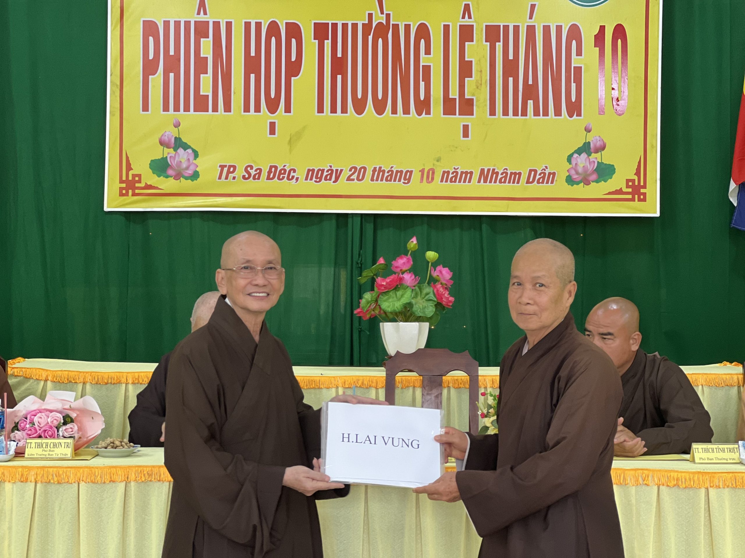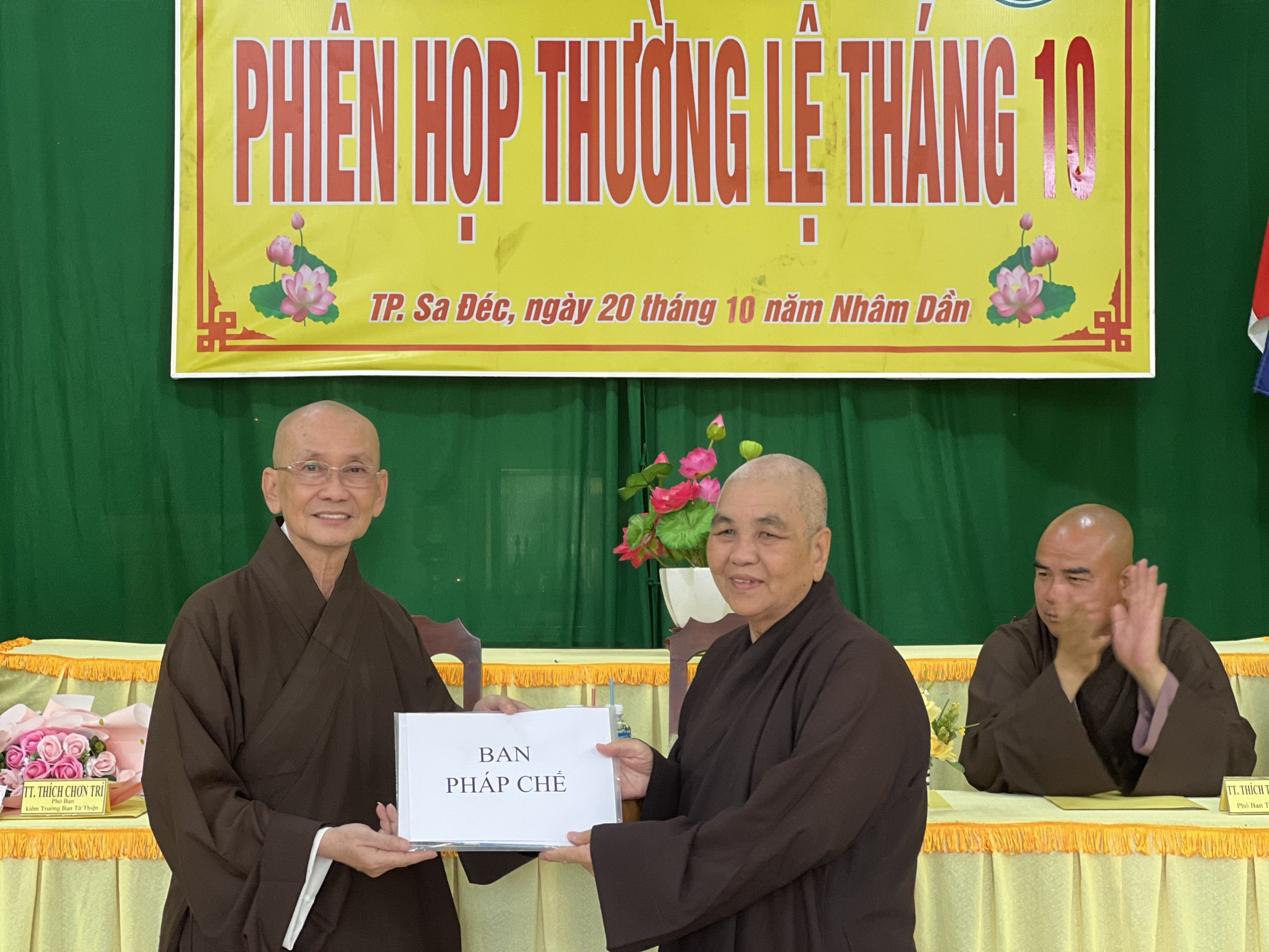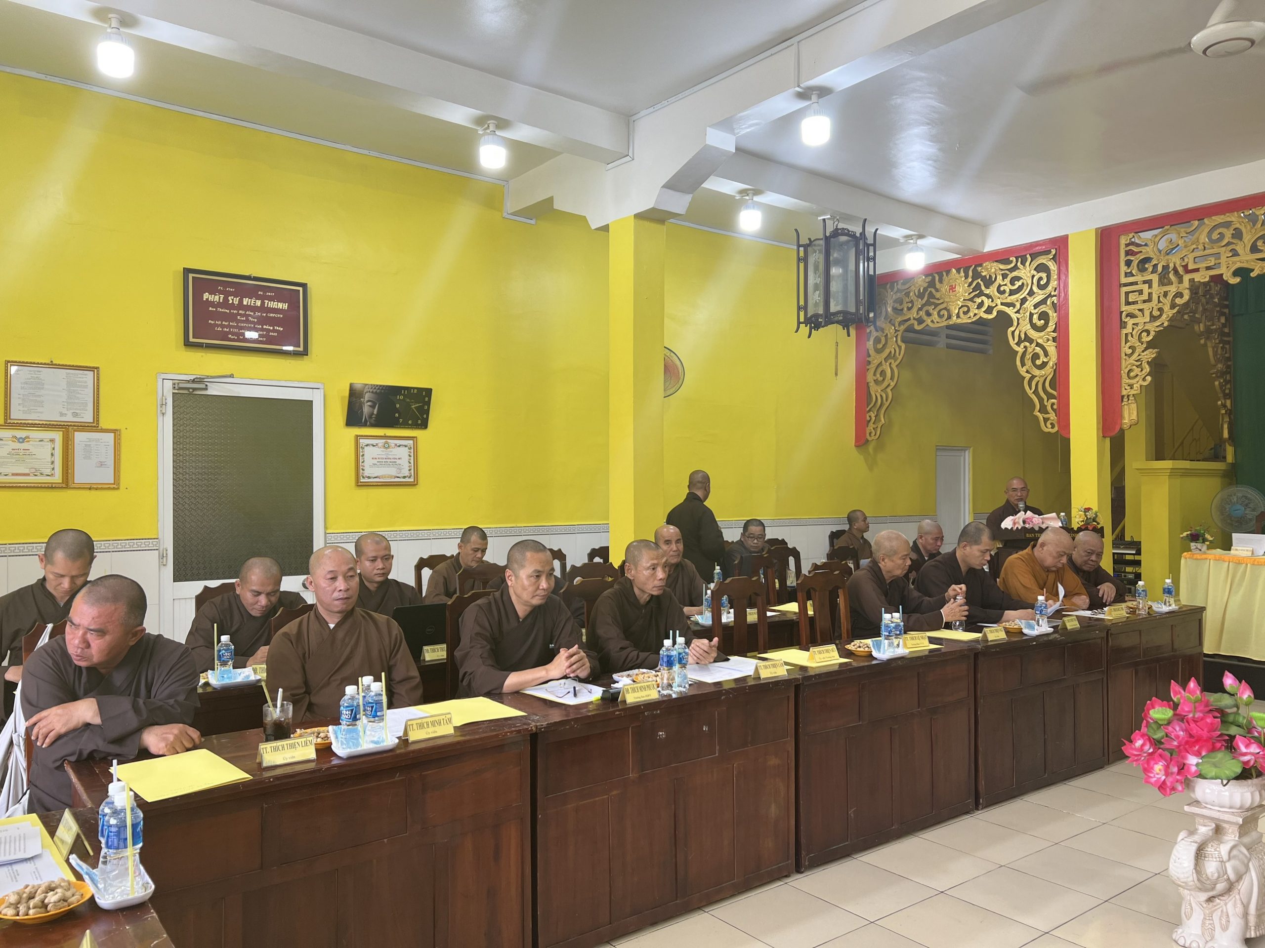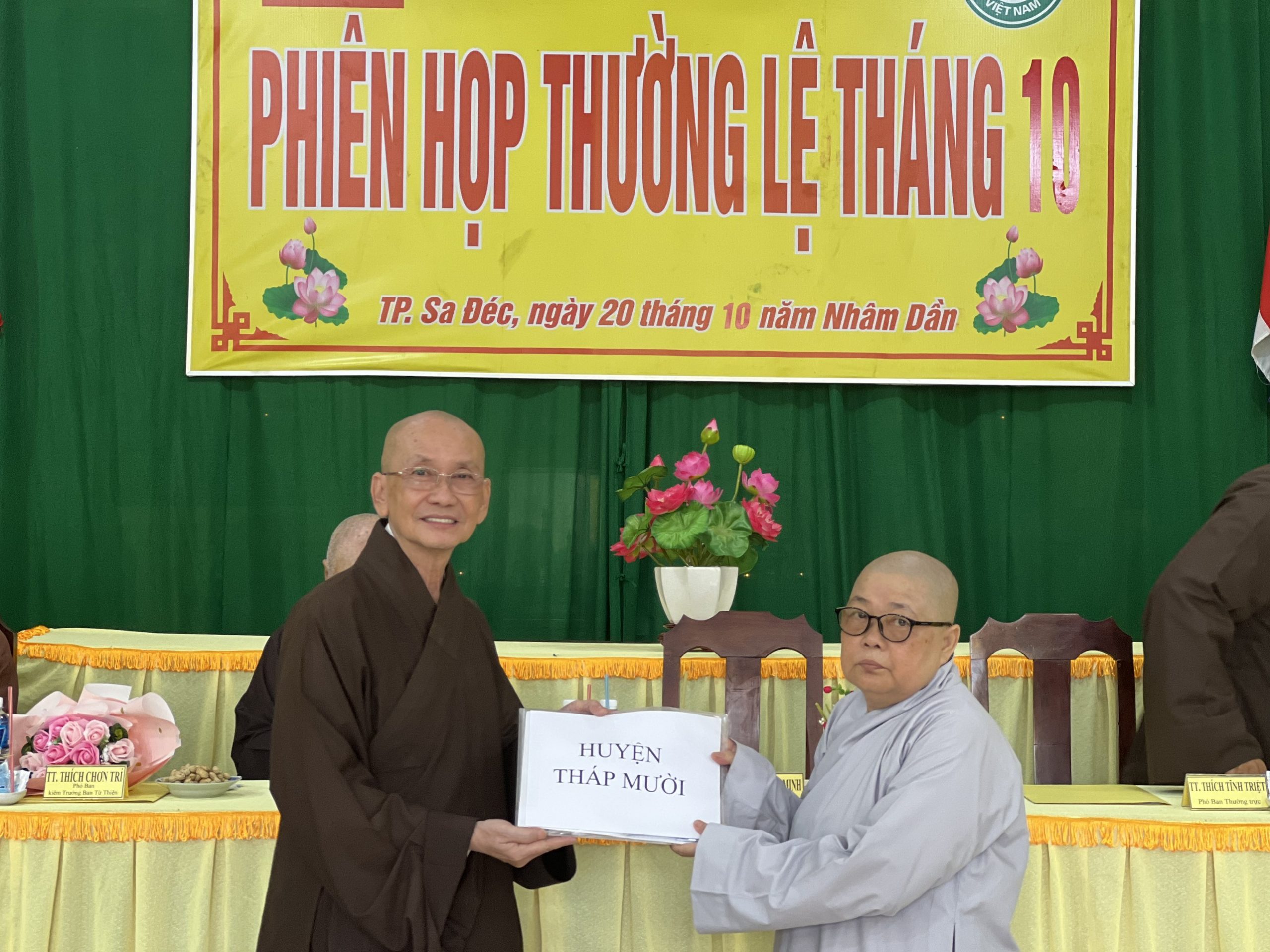 Hòa thượng Thích Chơn Minh - Ủy viên Hội đồng Trị sự, Trưởng ban Trị sự GHPGVN tỉnh Đồng Tháp chủ toạ và điều hành phiên họp định kỳ tháng 10 của Ban Trị sự với nhiều công tác Phật sự trong tháng qua.