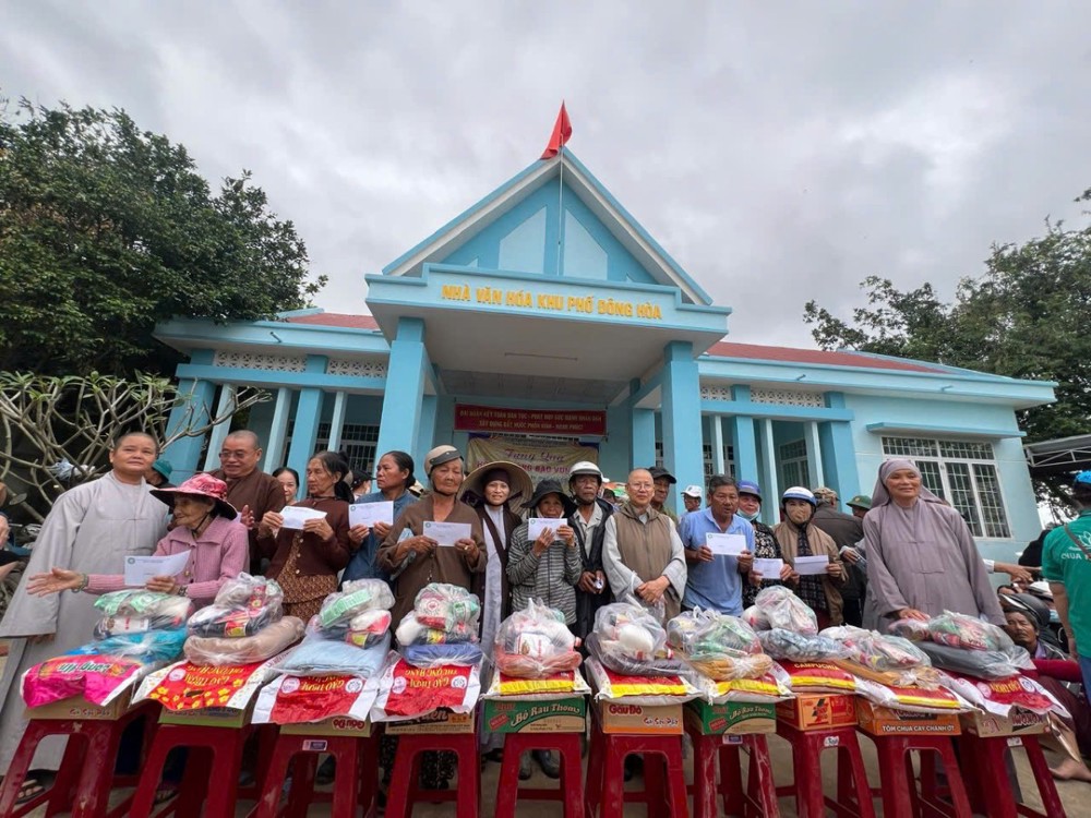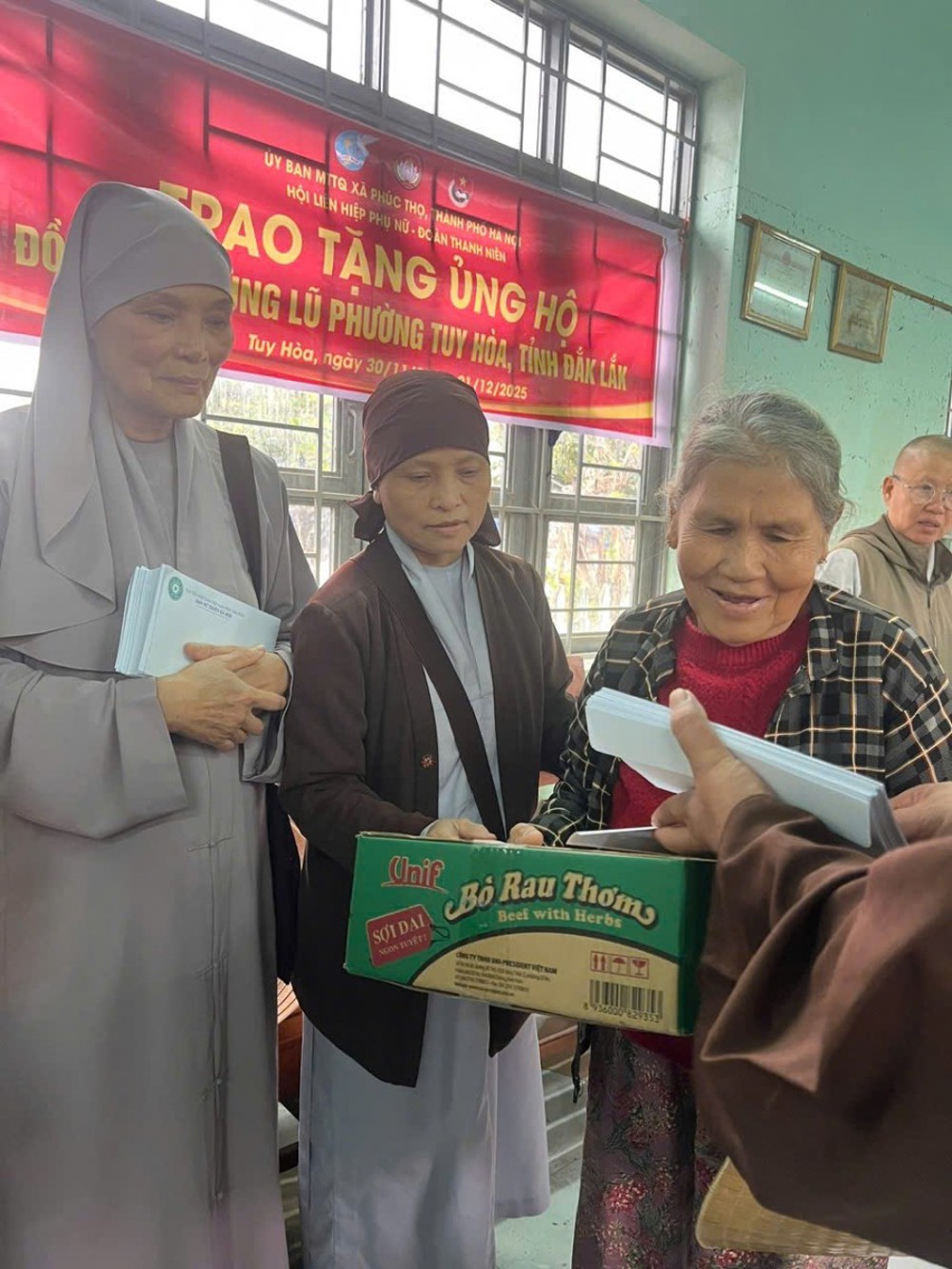 Ngày 7/12/2025, tại chùa Phước Long (Diên Khánh, tỉnh Khánh Hòa) đoàn được Thượng tọa Thích Thiện Phước – Phó Ban kiêm Chánh Thư ký Ban Trị sự Phật giáo Khánh Hòa – tiếp đón và phối hợp tổ chức. Sau khi thăm hỏi và chúc đồng bào có nhiều sức khỏe, sớm ổn định cuộc sống, đoàn đã trao 307 phần quà đến đại diện các hộ dân.