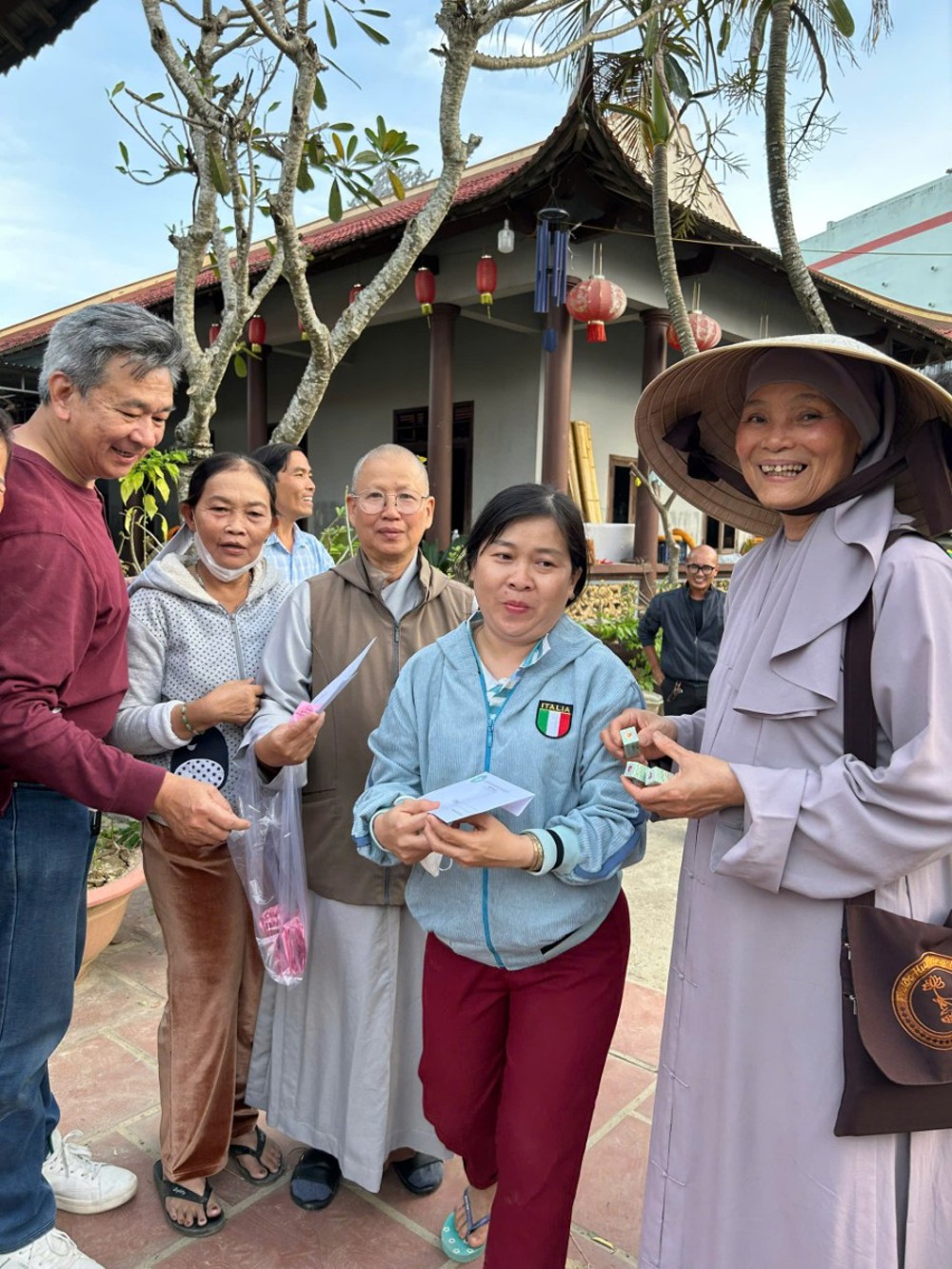 Cùng đi trong đoàn có TT. Thích Từ Minh – UVTT BTS, Chứng minh Ban Kinh tế – Tài chánh Phật giáo tỉnh; Ni sư Thích Nữ Chơn Tịnh – UVTT BTS, Thủ quỹ Ban Trị sự; Ni sư Thích Nữ Hạnh Khai – UVTT BTS, Phó Thường trực Ban Từ thiện Xã hội Phật giáo tỉnh; cùng chư Tôn đức và quý cư sĩ thành viên Ban Từ thiện Phật giáo tỉnh.