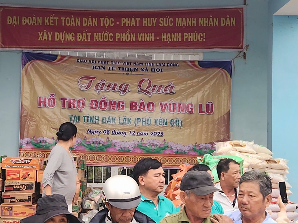 PSO- Trong hai ngày 7 và 08/12/2025, đoàn cứu trợ của Ban Trị sự GHPGVN tỉnh Lâm Đồng do Thượng tọa Thích Quảng Hiền – Ủy viên HĐTS, Phó Thường trực Ban Trị sự – làm Trưởng đoàn đã đến Khánh Hòa và Đắk Lắk trao hơn 600 phần quà hỗ trợ đồng bào và cúng dường các chùa bị thiệt hại nặng do lũ lụt, với tổng kinh phí 687 triệu đồng.