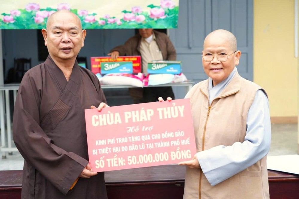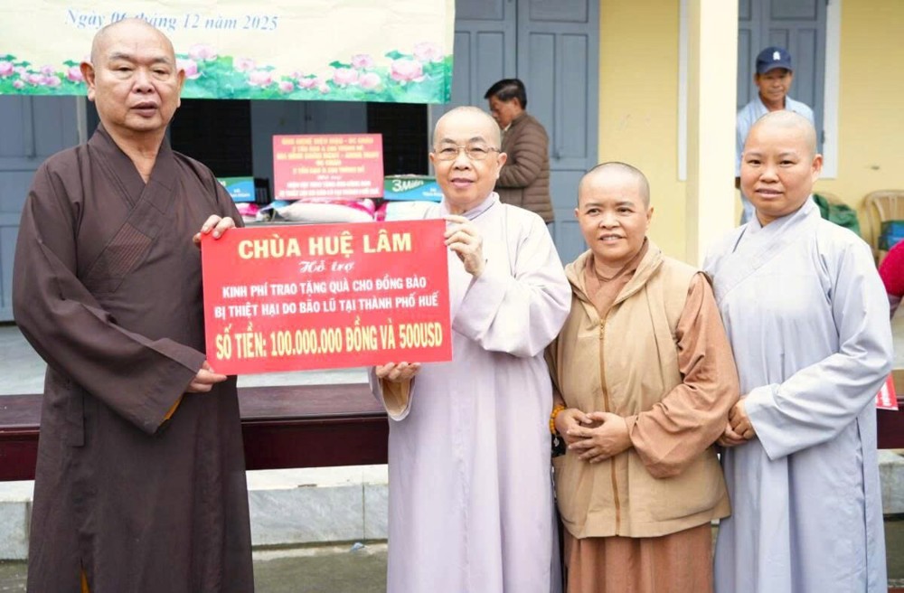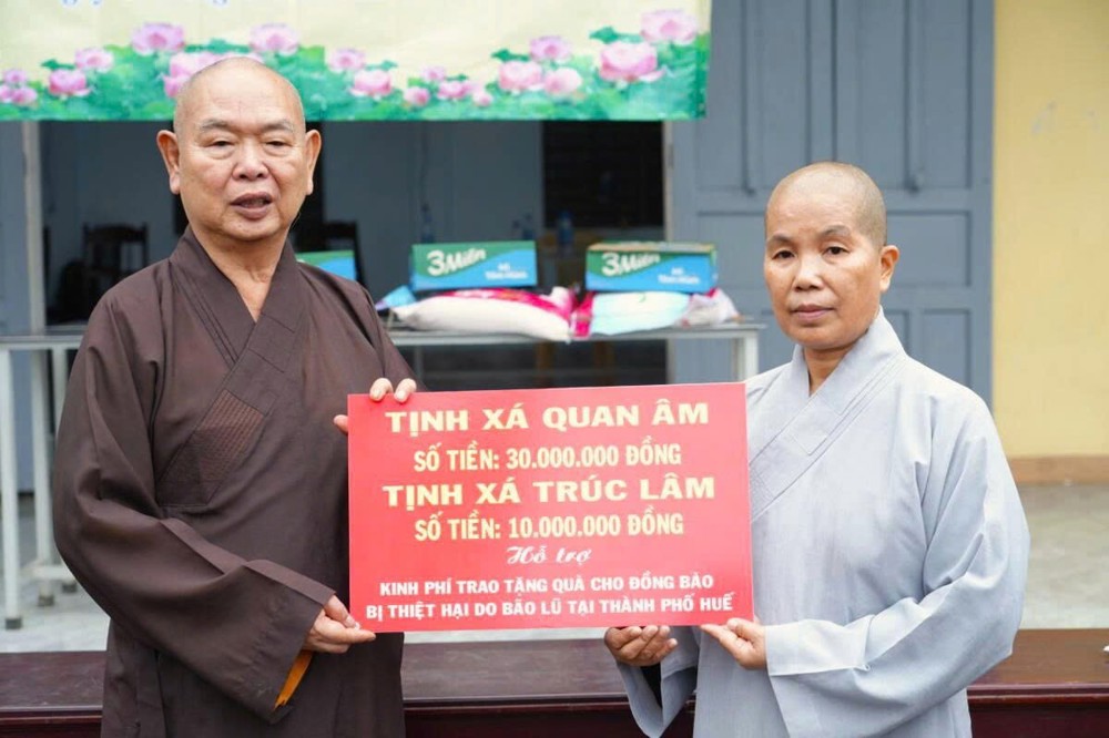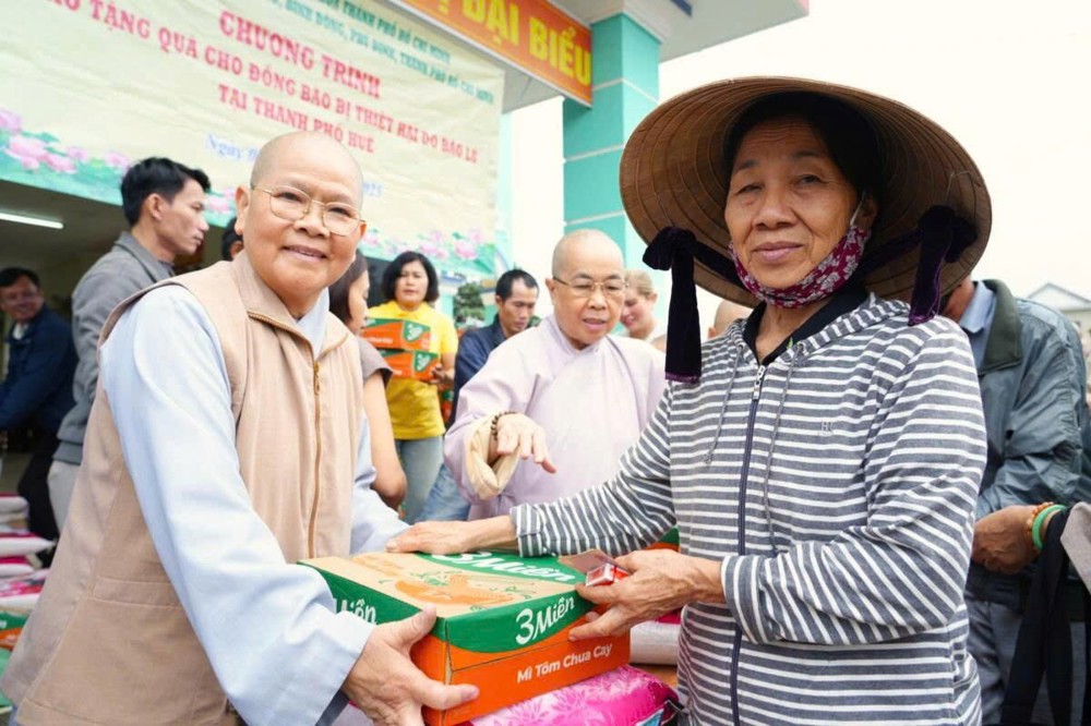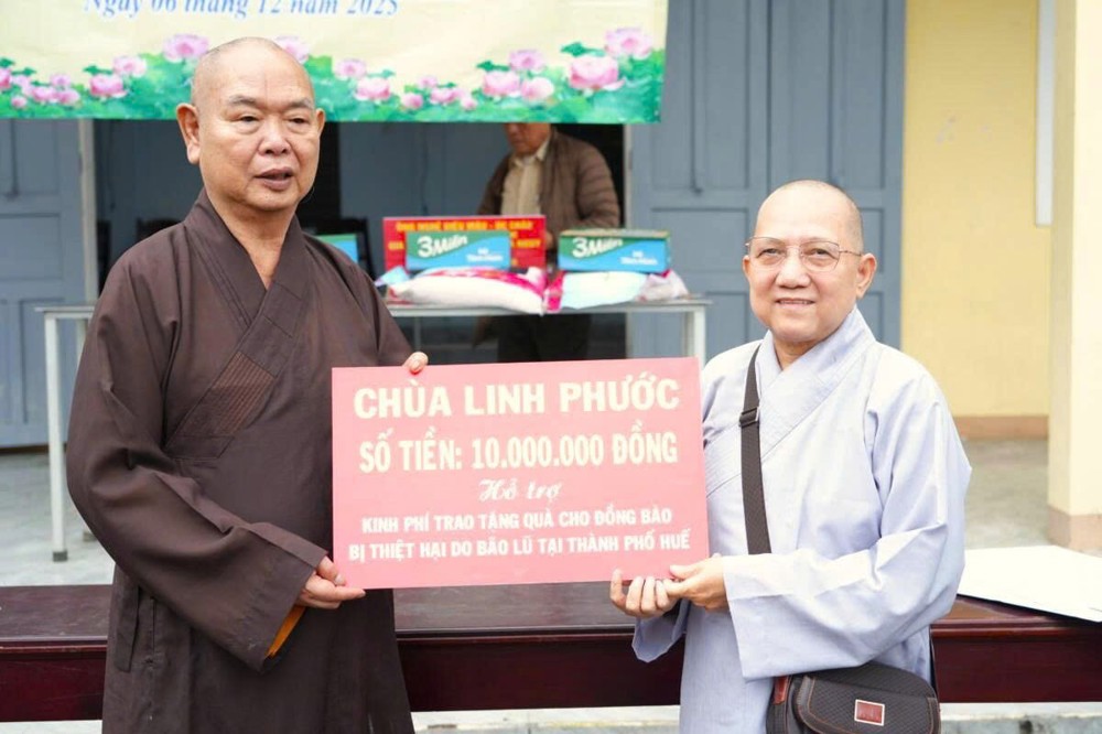 Phát biểu tại buổi trao quà, Hòa thượng Thích Khế Chơn cho biết người dân Huế chịu ảnh hưởng nặng nề của bão số 12 và 13 với mưa lớn kéo dài gây ngập lụt, giao thông chia cắt, nhiều hộ dân bị thiệt hại nghiêm trọng về tài sản. Hòa thượng bày tỏ lòng tri ân đến đoàn thiện nguyện đã kịp thời sẻ chia, hỗ trợ để bà con phần nào vượt qua khó khăn, sớm ổn định cuộc sống.