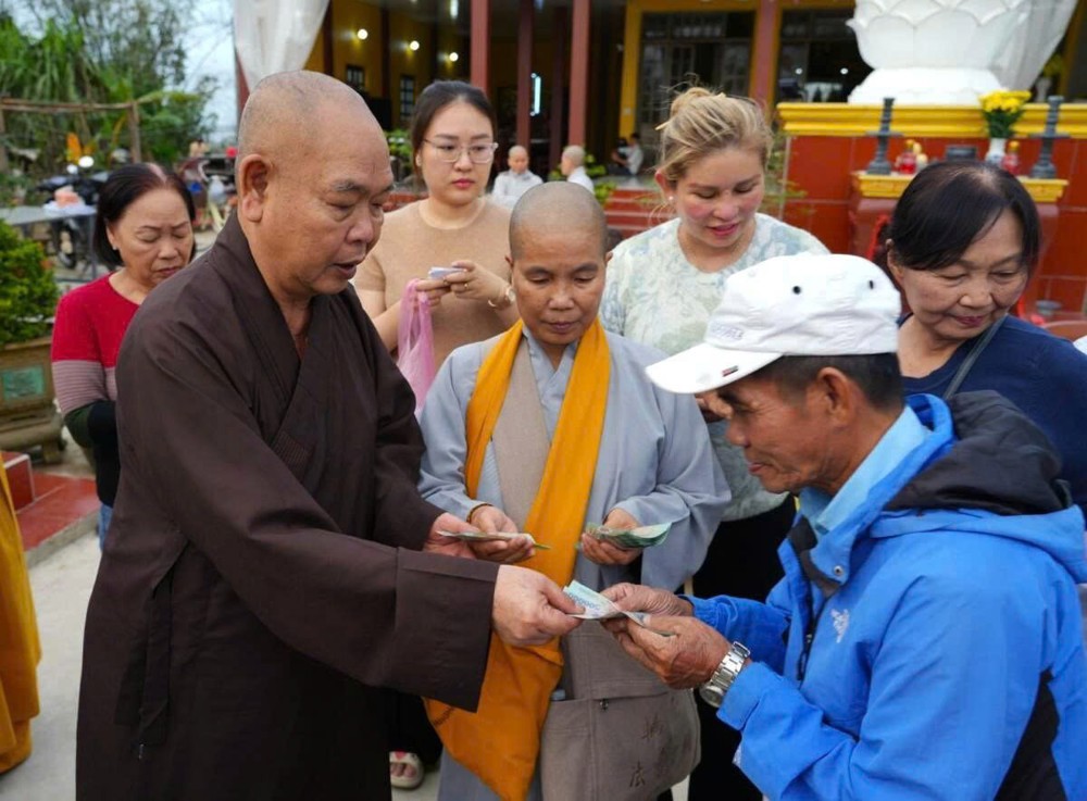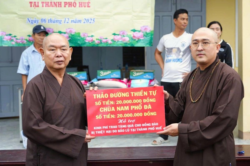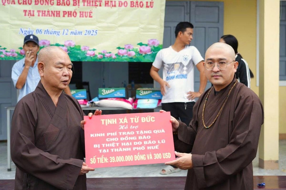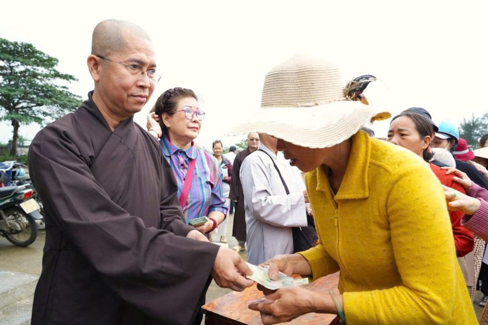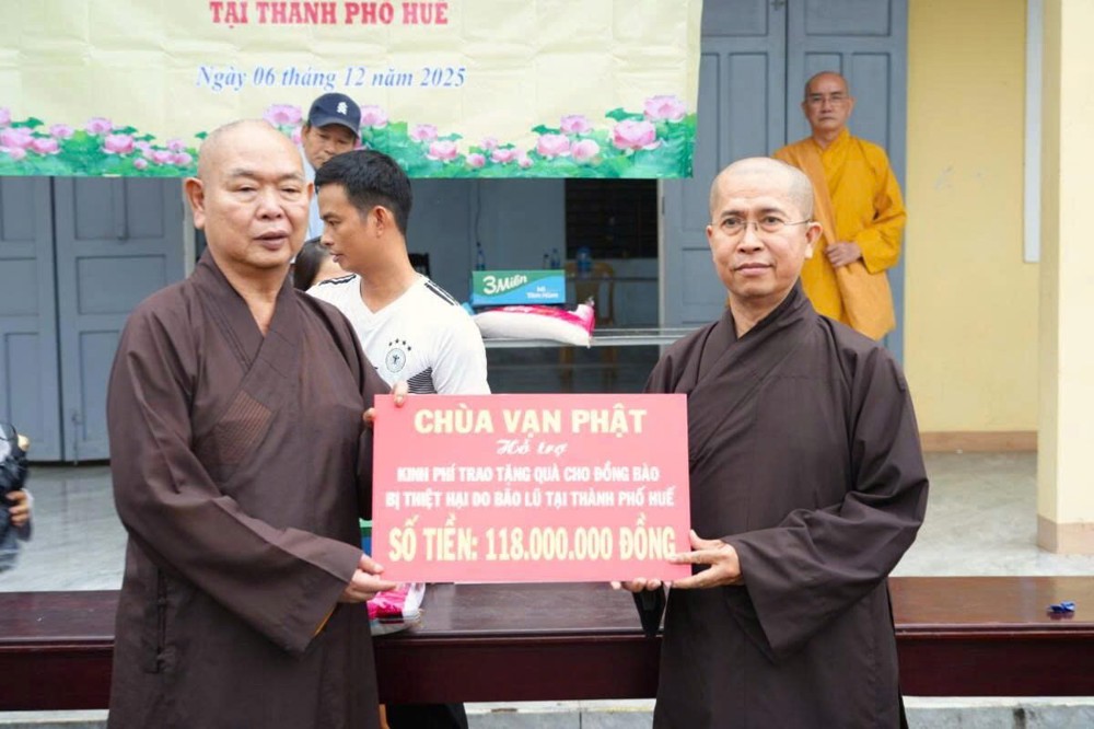 Phát biểu tại buổi trao quà, Hòa thượng Thích Khế Chơn cho biết người dân Huế chịu ảnh hưởng nặng nề của bão số 12 và 13 với mưa lớn kéo dài gây ngập lụt, giao thông chia cắt, nhiều hộ dân bị thiệt hại nghiêm trọng về tài sản. Hòa thượng bày tỏ lòng tri ân đến đoàn thiện nguyện đã kịp thời sẻ chia, hỗ trợ để bà con phần nào vượt qua khó khăn, sớm ổn định cuộc sống.
