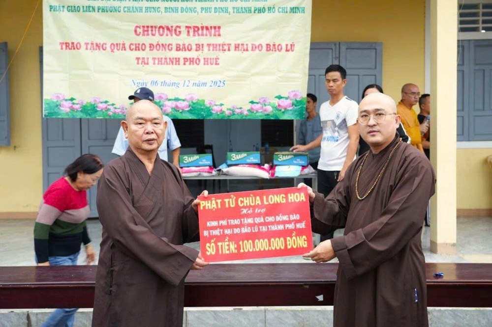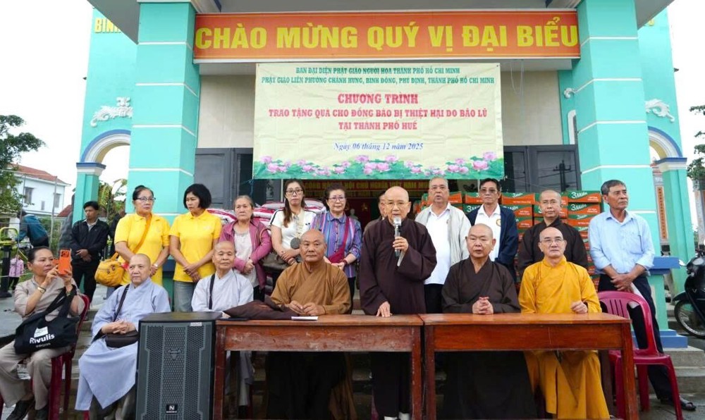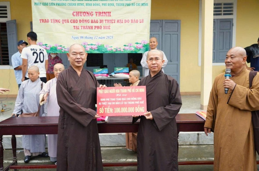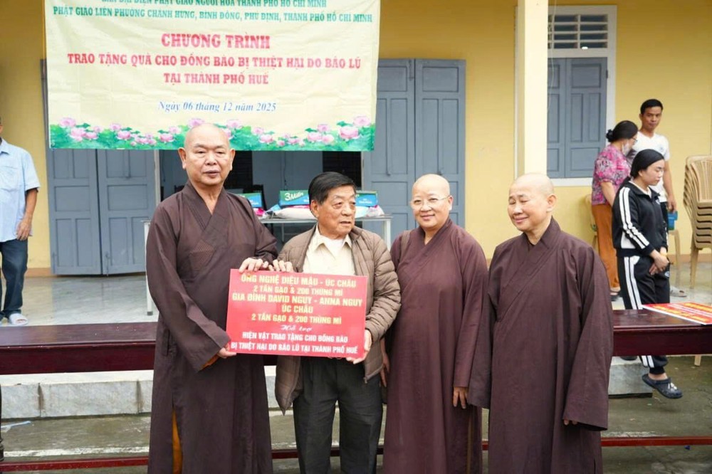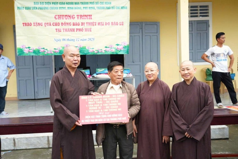 PSO - Từ ngày 5 đến 7/12/2025, đoàn cứu trợ đồng bào miền Trung do Ban Đại diện Phật giáo người Hoa TP.HCM, các tự viện phường Chánh Hưng, Bình Đông, Phú Định, các tự viện Hoa Tông TP, đại diện Phật giáo tỉnh Vĩnh Long cùng quý mạnh thường quân đã chung tay trao tặng 1.500 phần quà đến bà con bị ảnh hưởng bởi bão lũ tại TP. Huế và Quảng Trị.