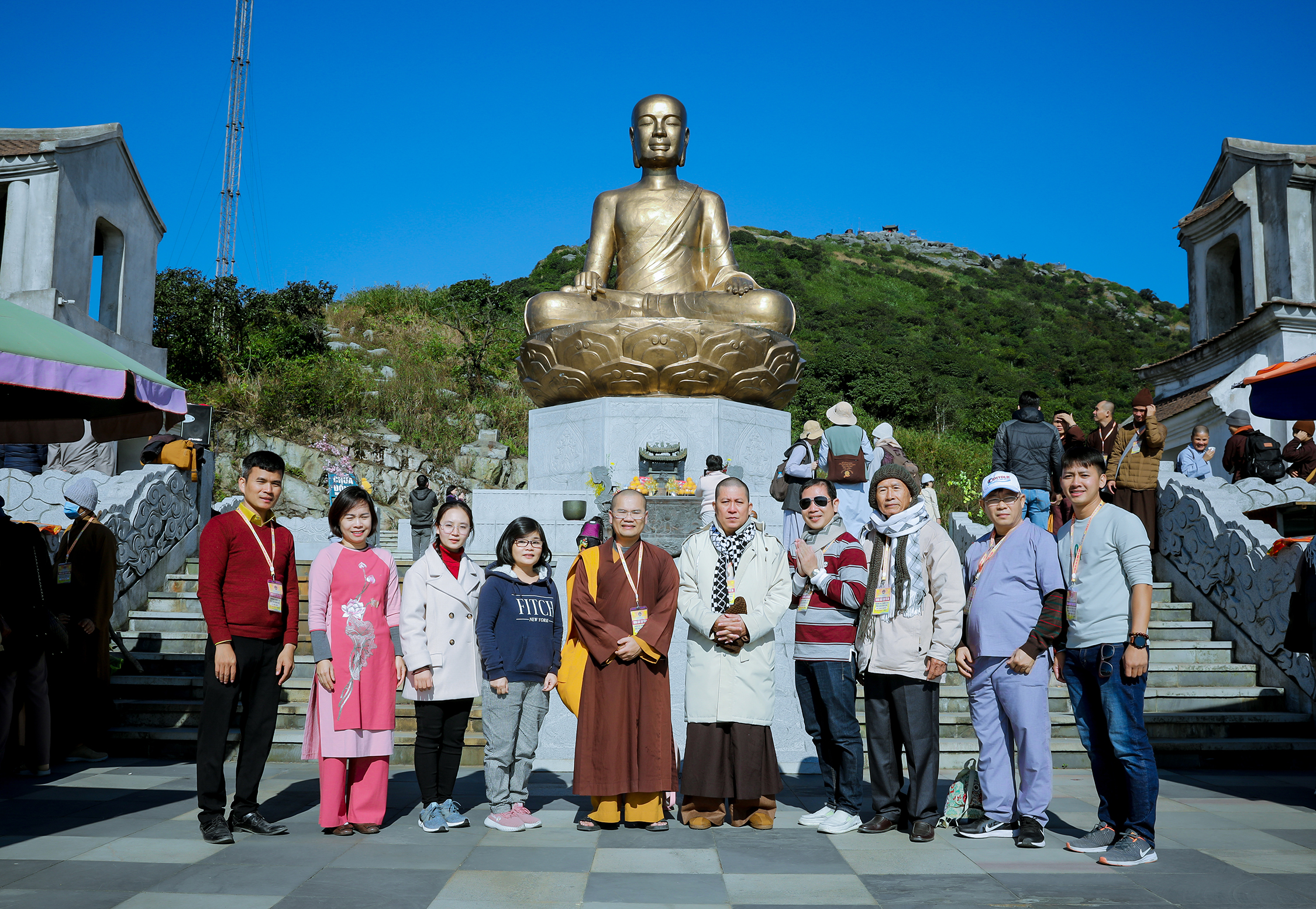 Trải nghiệm tiếp theo là Tượng Phật hoàng Trần Nhân Tông được đúc liền khối bằng đồng nguyên chất. Tượng đúc ngồi trên bệ được làm bằng bê tông cốt thép ốp đá điêu khắc cao 2,7 mét, phần đài sen và tượng cao 9,9 mét. Tổng thể tượng cao 12,6m, trọng lượng nặng 138 tấn được dựng trên khu đất rộng 2.200 m2. TT. Giác Hoàng - trưởng đoàn đã tổ chức chương trình niêm hương bạch Phật và cùng đại chúng tụng một thời kinh cầu cho Quốc thái dân an, chúng sinh được an lạc.