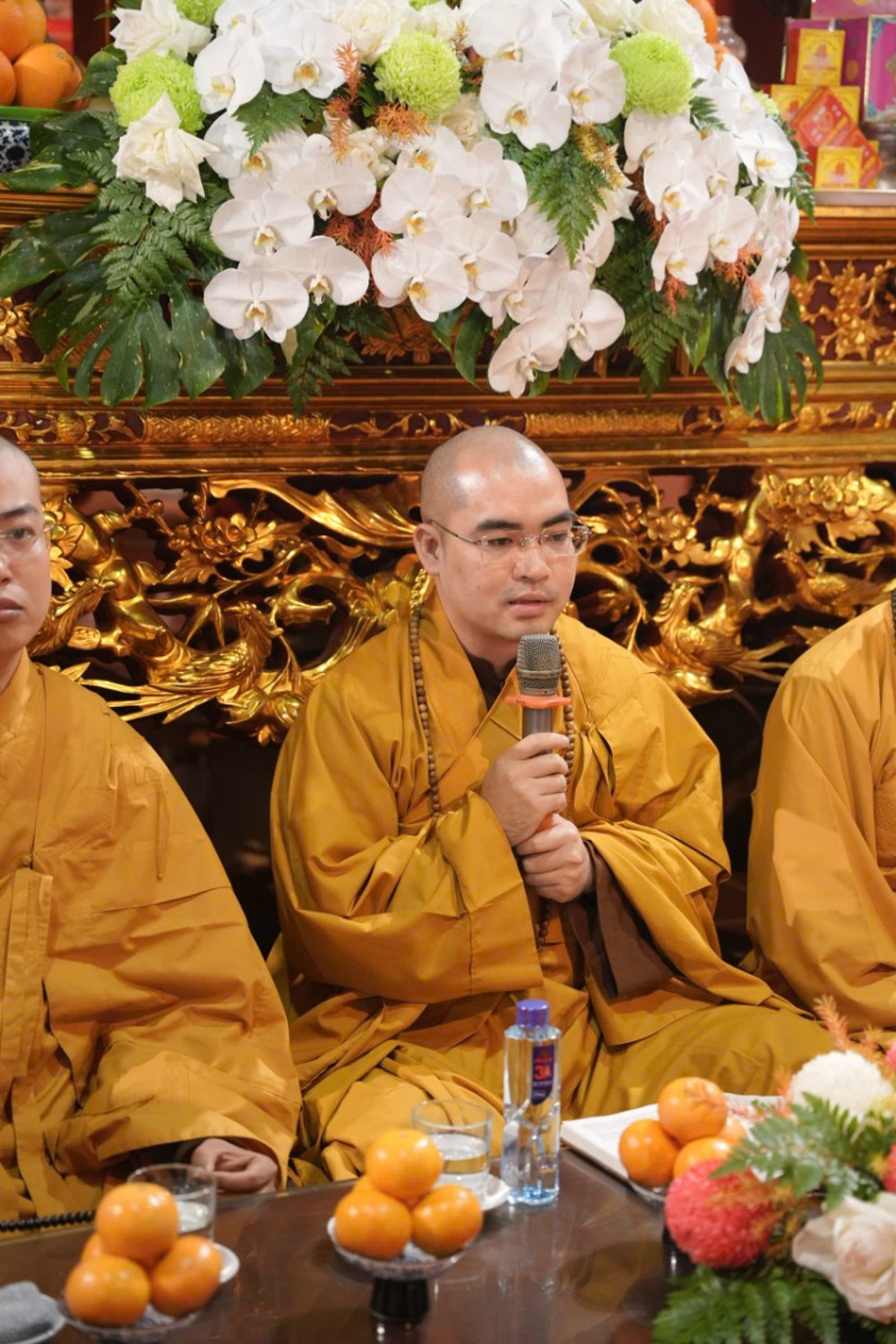 Tiếp đó, Đại đức Thích Nhuận Đức đã chia sẻ ý nghĩa của Lục hòa và giảng giải đạo nghĩa vợ chồng được Đức Phật chỉ dạy trong kinh Thiện Sinh. Qua đó, Đại đức nhấn mạnh bổn phận của người vợ đối với chồng và gia đình bên chồng; bổn phận của người chồng đối với vợ và gia đình bên vợ; cũng như trách nhiệm của cha mẹ đối với con cái và bổn phận của con cái đối với cha mẹ. Đồng thời, đôi bạn trẻ cũng được lắng nghe về ý nghĩa của nhẫn cưới và chữ “Nhẫn” trong đời sống hôn nhân. “Nhẫn” là sự nhường nhịn, tôn trọng lẫn nhau, là sự tu dưỡng đạo đức và phẩm hạnh – yếu tố quan trọng tạo nên sự hòa thuận, êm ấm và hạnh phúc lâu dài của gia đình.