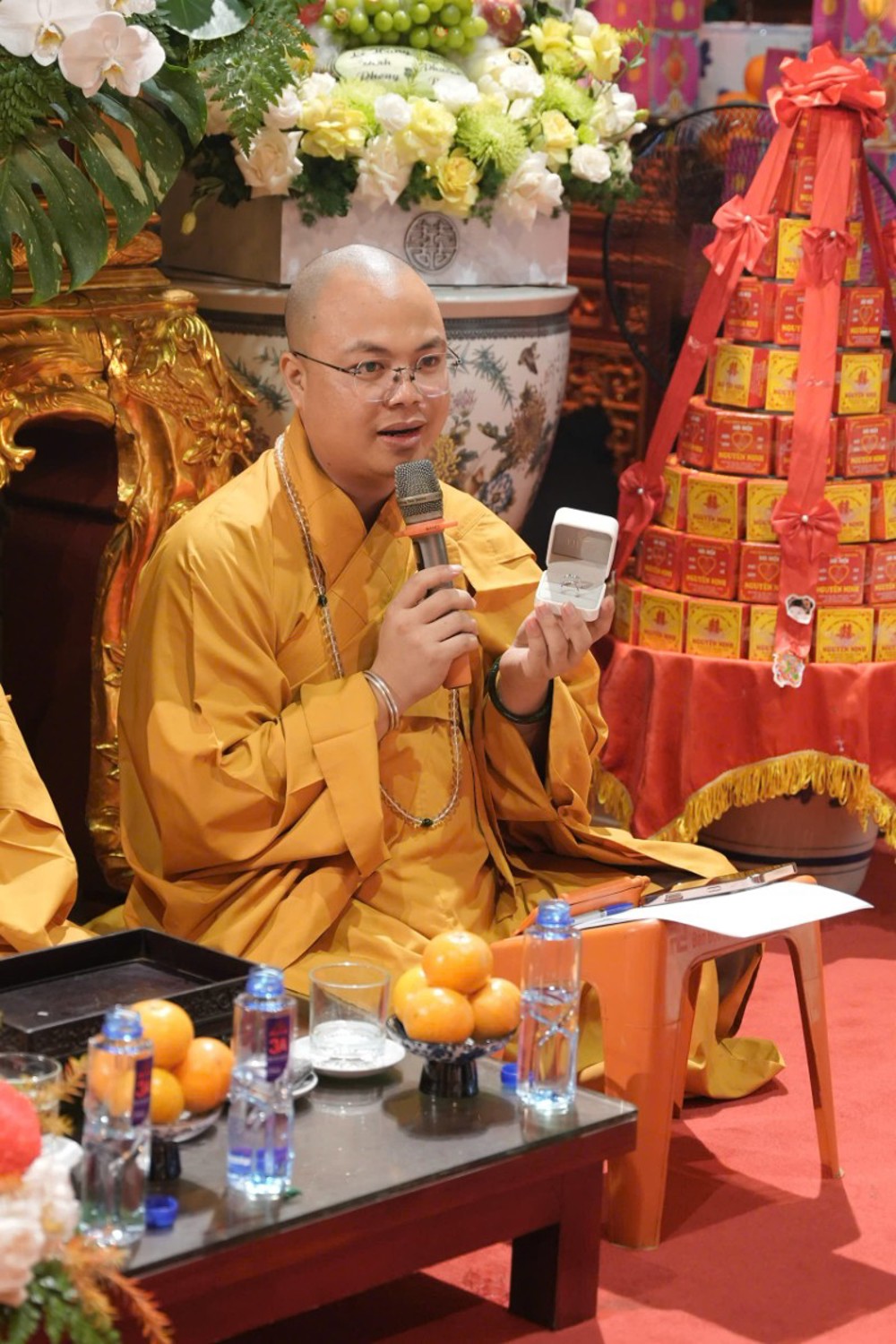 Trước sự chứng minh của Tam Bảo, chư Tôn đức và sự chứng kiến của đại diện hai bên gia đình, đôi tân lang, tân nương đã trao nhẫn cưới và dâng lời phát nguyện luôn yêu thương, tôn trọng nhau, chung tay gìn giữ hạnh phúc gia đình bền vững; nguyện hành trì đúng theo lời Phật dạy trong kinh Thiện Sinh, tinh tấn tu học, giữ gìn Ngũ giới, trở thành những Phật tử chân chính, hộ trì Tam Bảo.