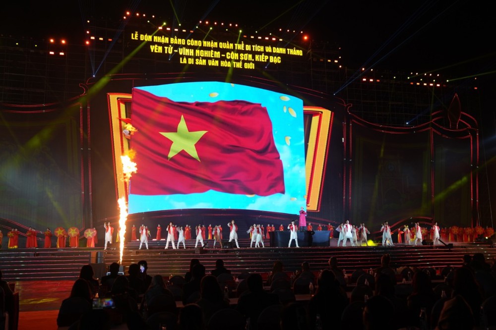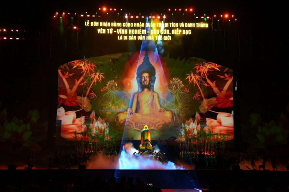 Chương trình nghệ thuật “Miền thiêng di sản – Tỏa sáng hào quang” để chào mừng sự kiện đặc biệt lần này, như lời chào mừng khoảnh khắc thiêng liêng, nơi giá trị tâm linh, lịch sử và cảnh quan thiên nhiên của quần thể di sản được tôn vinh, lan tỏa tới cộng đồng và bạn bè quốc tế. Không chỉ mang ý nghĩa văn hóa sâu sắc, chương trình còn tạo nên một không gian nghệ thuật giàu cảm xúc với sự xuất hiện của dàn nghệ sĩ tên tuổi như Hồ Quỳnh Hương, Võ Hạ Trâm, Tùng Dương,… Những màn trình diễn được dàn dựng công phu, kết hợp âm nhạc, ánh sáng và sân khấu hiện đại, đã mang đến một đêm thăng hoa giữa miền non thiêng Yên Tử.