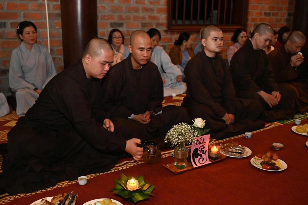Tối cùng ngày, tại chùa Khánh Lâm đã tổ chức một chương trình Thiền trà trang nghiêm và ấm cúng. Đây là một không gian lý tưởng để chư tôn đức lớn có cơ hội chia sẻ kinh nghiệm quý báu từ con đường tu học, hành đạo của mình đến thế hệ Tăng Ni sinh.