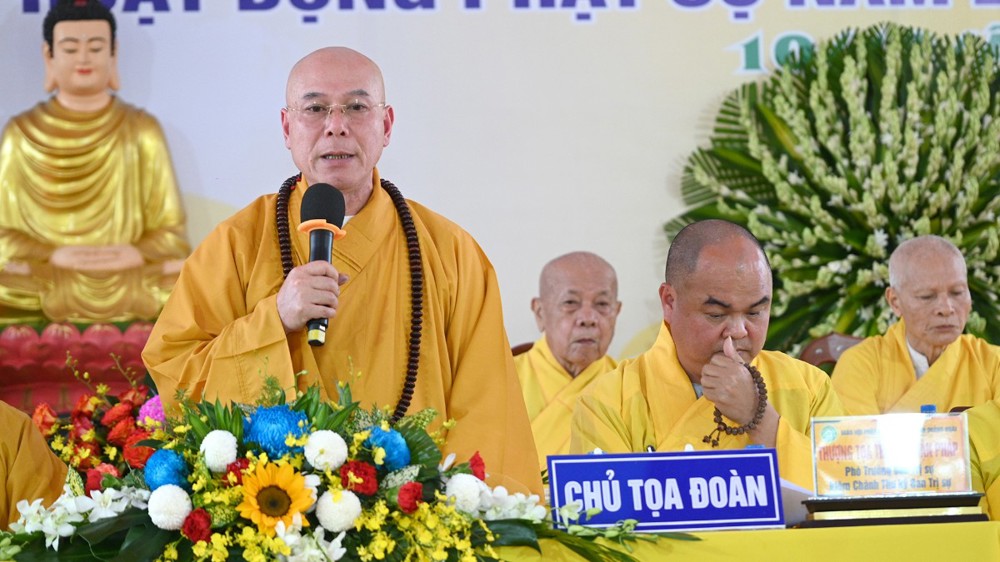 Tại Hội nghị, Ban Thư ký đã trình bày báo cáo tổng kết công tác Phật sự năm 2025. Báo cáo cho biết, toàn tỉnh hiện có 390 cơ sở tự viện và 17 điểm tôn giáo tập trung, trong đó có 2 điểm Phật giáo Nam Tông Kinh; tổng số 717 vị Tăng Ni đang tu học, hành đạo, gồm 507 vị Tăng và 238 vị Ni. Trong năm, Ban Trị sự đã thành lập Ban Quản trị tự viện đối với chùa Phước Sơn, chùa Đức Long (xã Tư Nghĩa) và chùa Hang (đặc khu Lý Sơn).