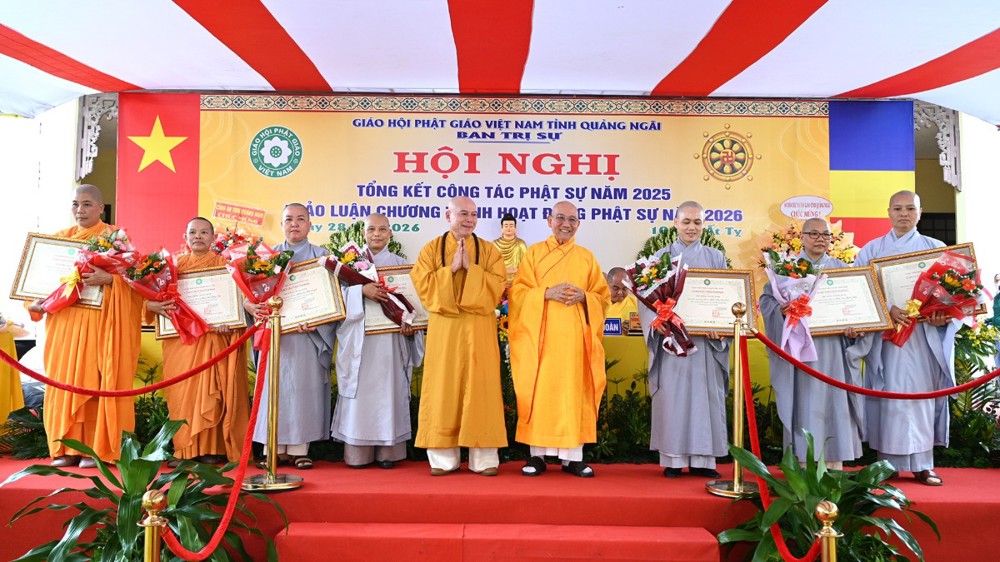 Hội nghị tổng kết công tác Phật sự năm 2025 và triển khai phương hướng hoạt động năm 2026 của Ban Trị sự GHPGVN tỉnh Quảng Ngãi khép lại trong không khí trang nghiêm, đoàn kết và hoan hỷ.