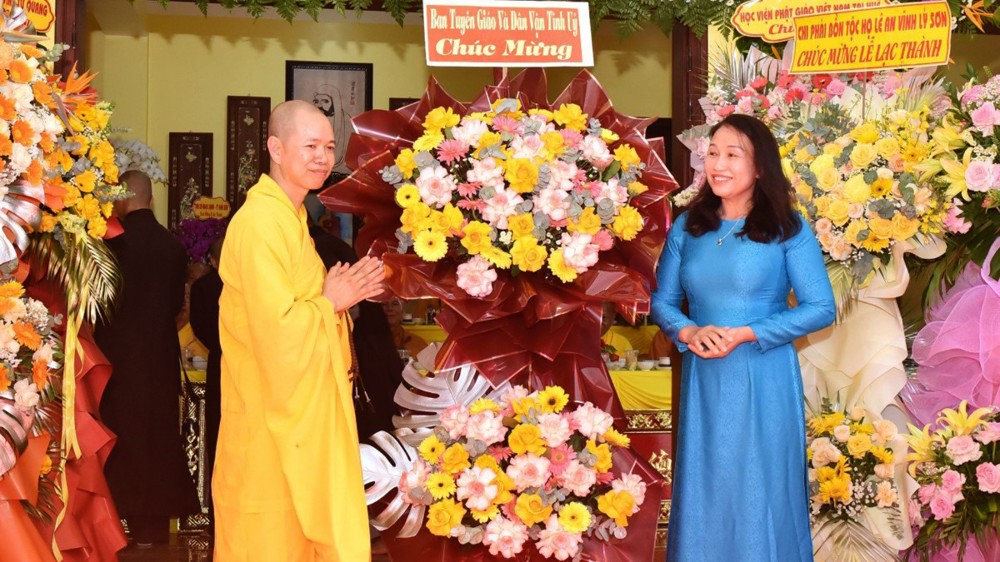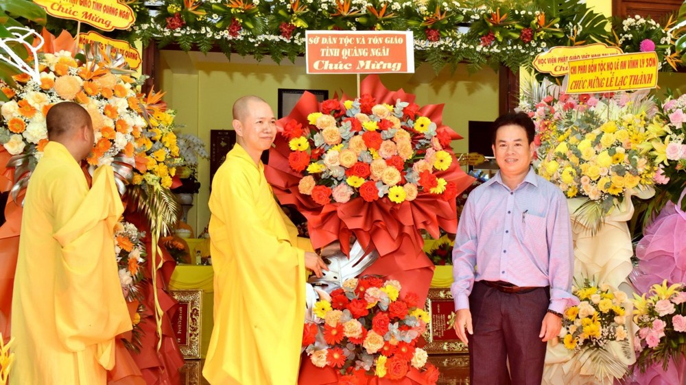 Tại buổi lễ, Ban Trị sự GHPGVN tỉnh Quảng Ngãi, Học viện Phật giáo Việt Nam tại TP. Huế, Ban Giáo dục Phật giáo tỉnh Quảng Ngãi, Trường Trung cấp Phật học tỉnh Quảng Ngãi cùng các cơ quan, đơn vị hữu quan đã gửi lẵng hoa tươi thắm và những phần quà ý nghĩa chúc mừng.