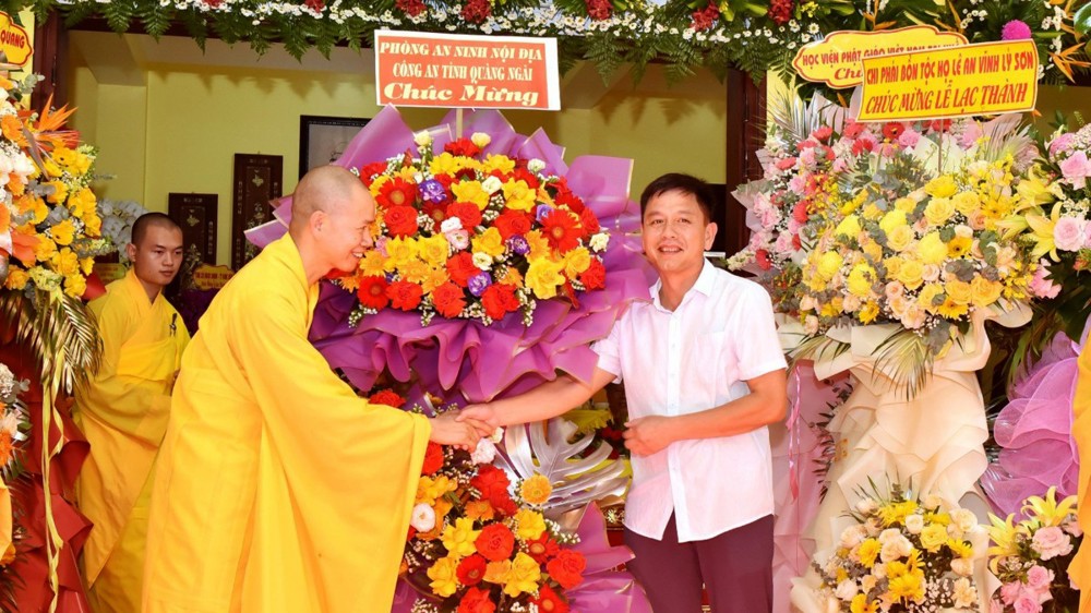 Về phía chính quyền có bà Võ Thị Tuyết Nhung, Phó Ban Tuyên giáo – Dân vận Tỉnh ủy; ông Trần Văn Tấn, Trưởng phong Tôn giáo, Sở Dân tộc – Tôn giáo tỉnh; Thượng tá Võ Chí Cường, Trưởng Phòng An ninh Nội địa Công an tỉnh, cùng quý vị đại diện các cơ quan Ban ngành tỉnh Quảng Ngãi, cùng lãnh đạo địa phương; quý quan khách, thiện tín Phật tử gần xa đồng về tham dự, chung niềm hoan hỷ.