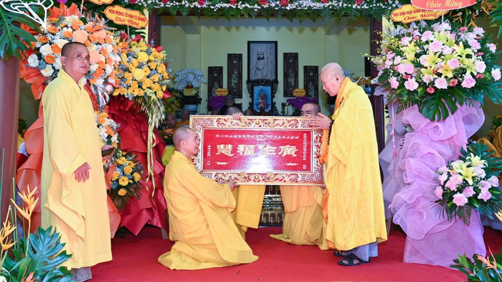 Buổi lễ diễn ra dưới sự quang lâm chứng minh của chư Tôn đức Giáo phẩm: Hòa thượng Thích Huệ Đạt, Hòa thượng Thích Trí Thắng, Hòa thượng Thích Trừng Nghị, Hòa thượng Thích Thông Hội, đồng Chứng minh Ban Trị sự GHPGVN tỉnh; Thượng tọa Thích Nhuận Bảo, Ủy viên HĐTS – Trưởng Ban Trị sự GHPGVN tỉnh; Đại đức Thích Thông Huy, Ủy viên HĐTS, Phó trưởng Ban Thường trực Ban Trị sự GHPGVN tỉnh; Thượng tọa Thích Nhuận Pháp, Phó Trưởng Ban kiêm Chánh Thư ký Ban Trị sự GHPGVN tỉnh, cùng chư Hòa thượng, Thượng tọa, Ni trưởng, Ni sư và đông đảo Tăng Ni.