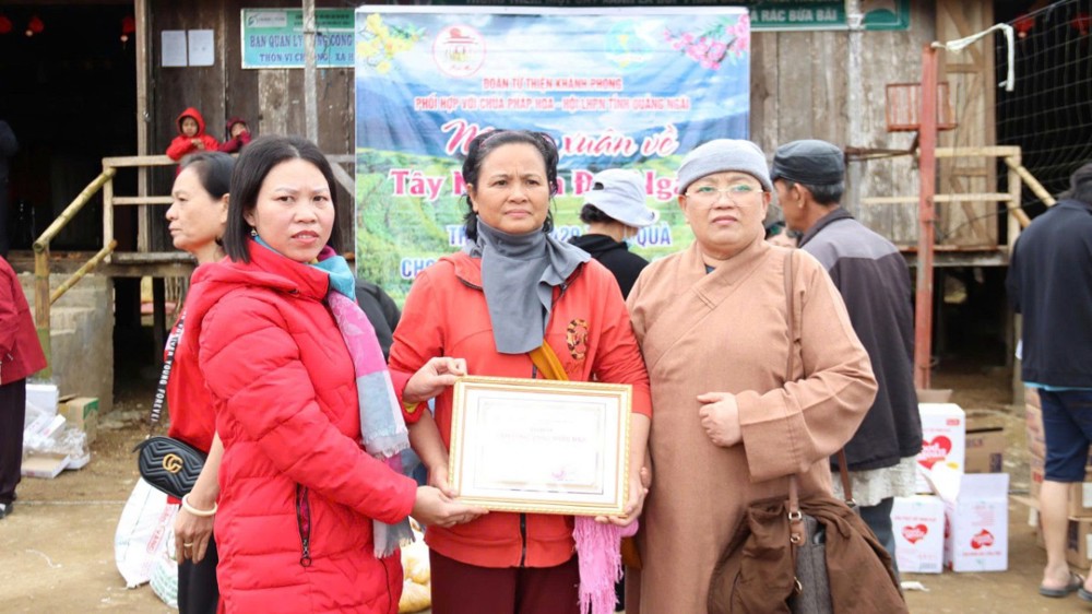 PSO - Ngày 10/1/2026, Ni sư Thích Nữ Chúc Giác – Ủy viên Thường trực, Thủ quỹ Ban Trị sự GHPGVN tỉnh Quảng Ngãi, Trụ trì chùa Pháp Hoa (xã Đăk Rơ Wa), đã phối hợp cùng Đoàn từ thiện Khánh Phong và Hội Liên hiệp Phụ nữ tỉnh Quảng Ngãi tổ chức chương trình thiện nguyện với chủ đề “Mang Xuân về Tây Nguyên đại ngàn”.