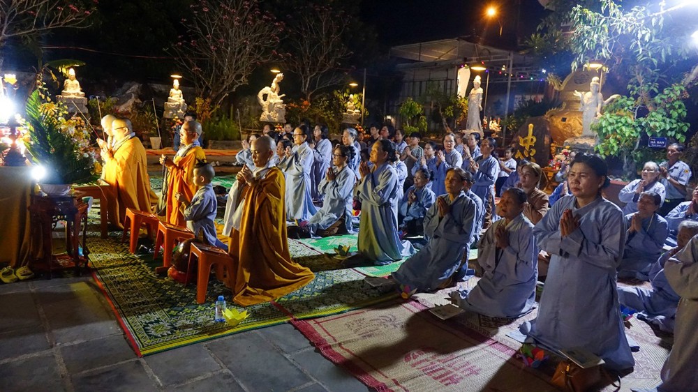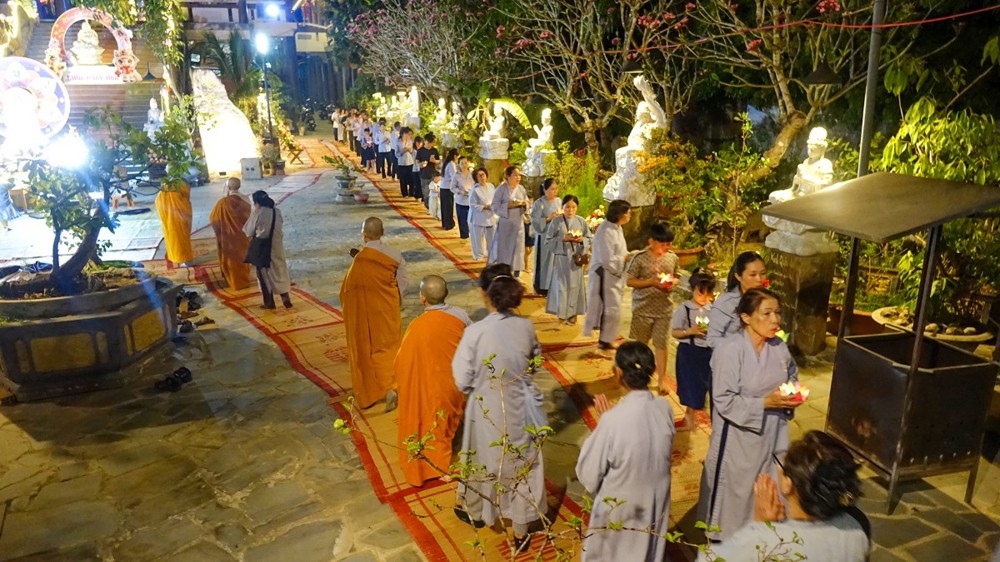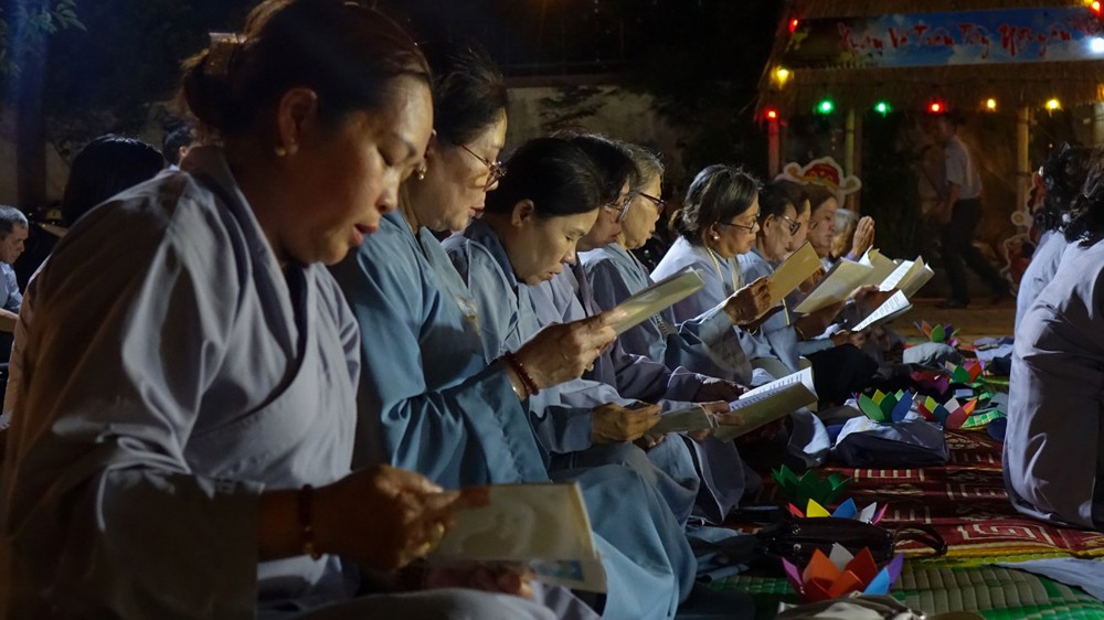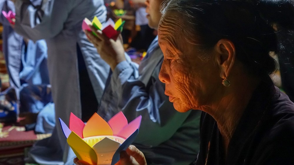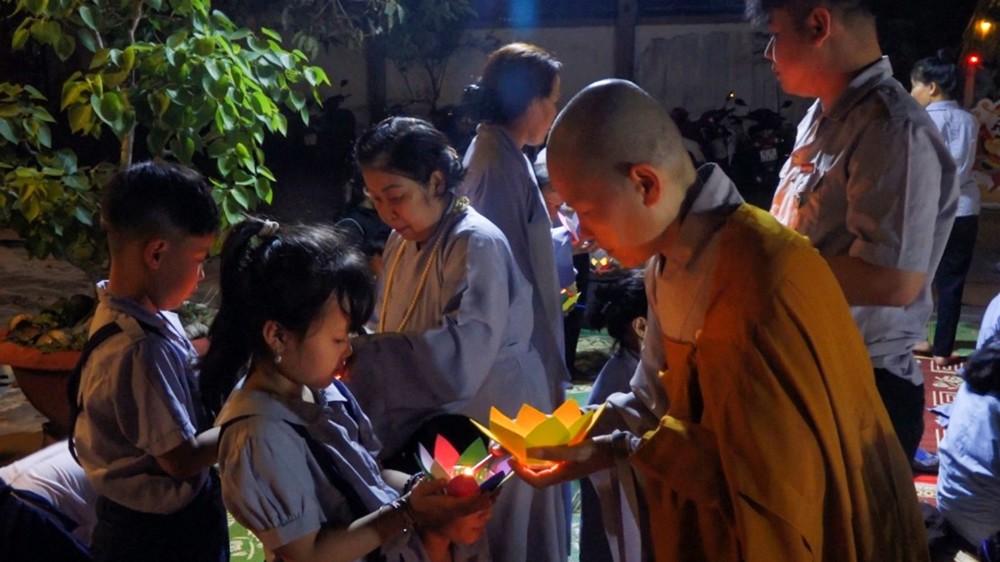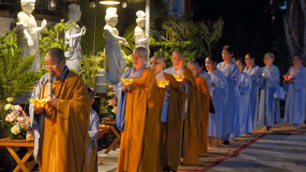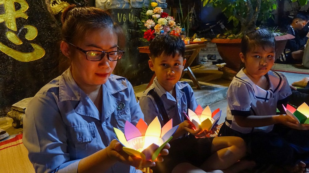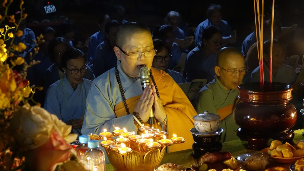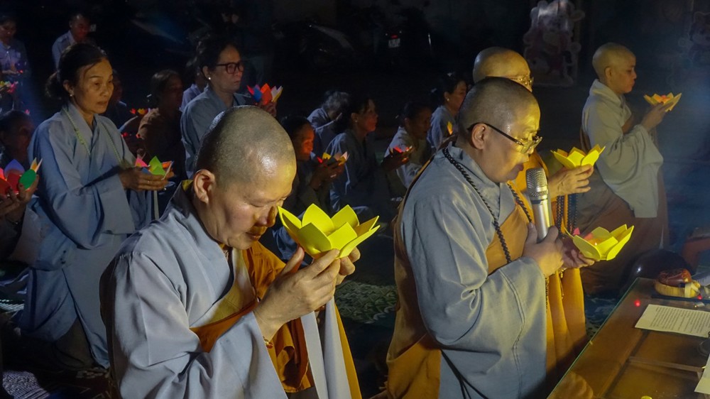 Tiếp đó, đại chúng trang nghiêm cử hành nghi thức thắp nến tri ân. Trong không gian lung linh ánh nến, đại chúng thành kính tưởng niệm công ơn sinh thành, dưỡng dục của cha mẹ; tri ân Tam Bảo, chư vị tiền nhân, anh linh anh hùng liệt sĩ; đồng thời hướng tâm về hạnh nguyện cứu khổ ban vui của Đức Quán Thế Âm Bồ-tát, phát nguyện sống thiện lành, lan tỏa yêu thương đến cộng đồng.