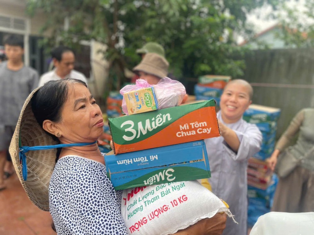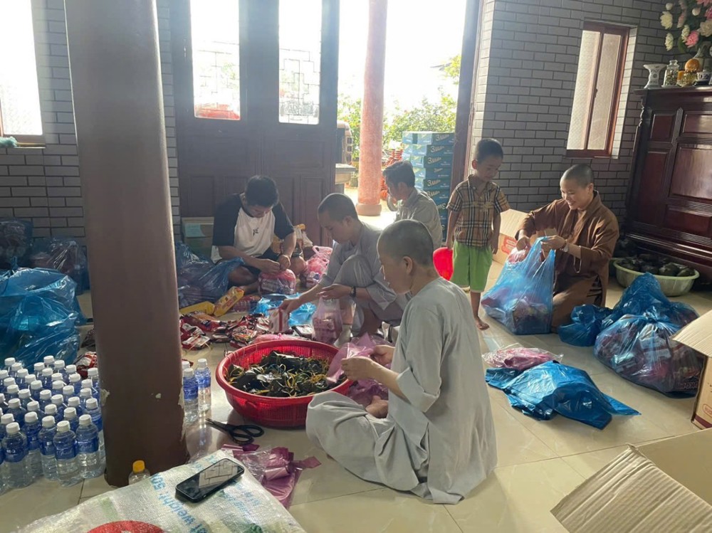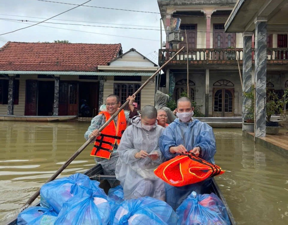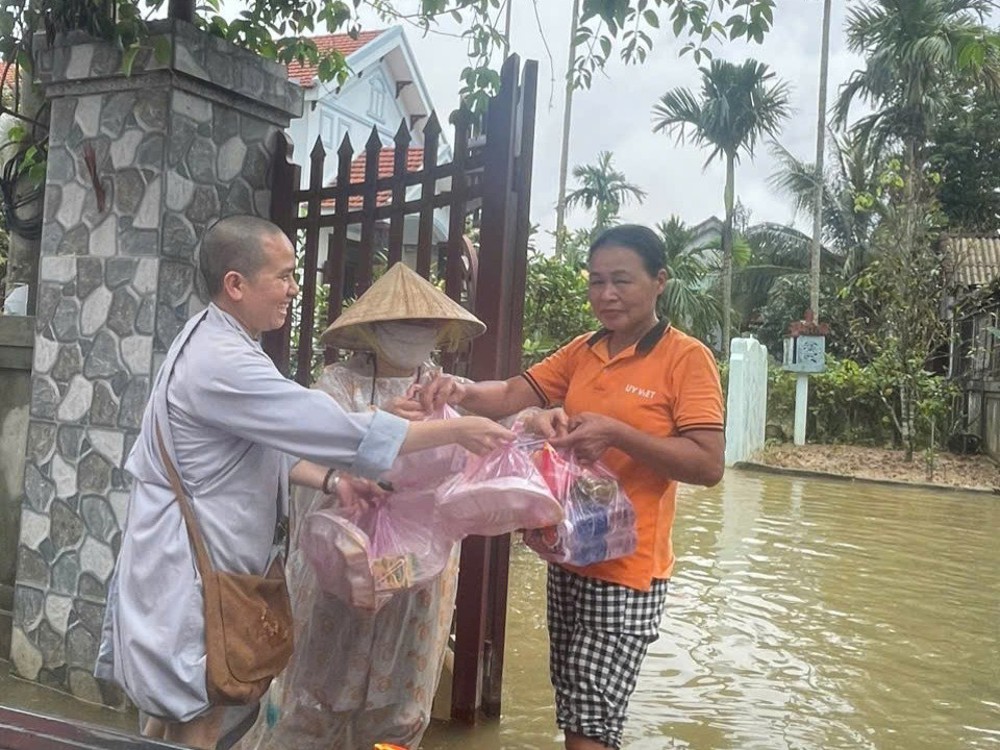 Trước tình hình đó, quý Sư cô trụ trì các ngôi chùa trên địa bàn tỉnh Quảng Trị đã nhanh chóng kết nối các mạnh thường quân, đồng thời tự tay chuẩn bị những phần cơm, phần quà nghĩa tình để kịp thời gửi đến bà con vùng lũ. Trong suốt 4 ngày (từ 29/10 đến 01/11), quý Sư cô đã trao tặng hơn 2.500 suất cơm, bánh mì, bánh chưng, sữa, nước lọc, cùng 3 tấn gạo, 300 thùng mì và nhiều nhu yếu phẩm khác.