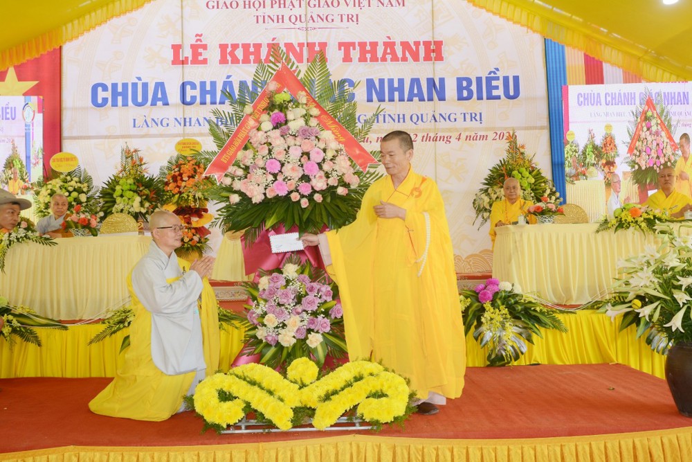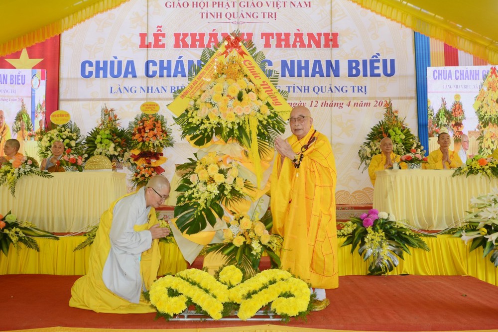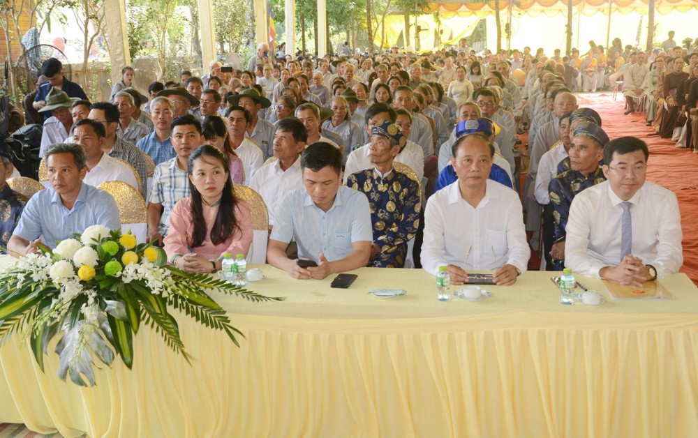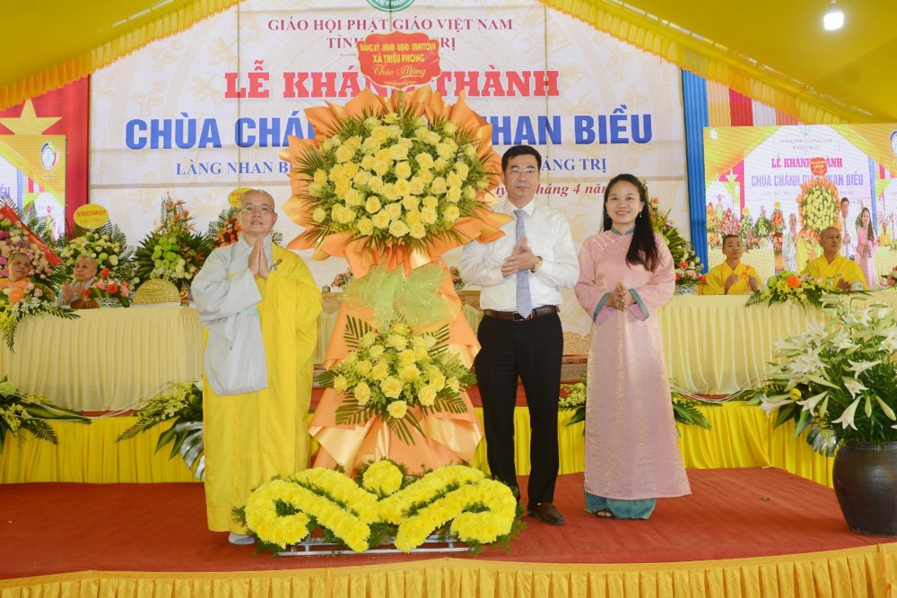 Thân lâm tham dự buổi lễ có ông Đặng Sỹ Dũng, Phó Bí thư Đảng ủy, Chủ tịch UBND xã Triệu Phong; ông Trần Việt Dũng, Phó Bí thư Đảng ủy, Chủ tịch UBND xã Nam Cửa Việt; bà Phan Thị Hồng Yến, Chủ tịch Ủy ban MTTQVN xã Triệu Phong; ông Đỗ Dương Hà, Trưởng Công an xã Triệu Phong cùng các ông bà đại diện Ban Liên lạc Sư đoàn 304; các phòng ban của xã Triệu Phong; các ông bà đại diện Chi ủy, Ban Công tác Mặt trận khu vực 2 Nhan Biều; quý cụ Hương chức hào lão trong làng Nhan Biều và đông đảo Phật tử trong và ngoài tỉnh về tham dự và chúc mừng.