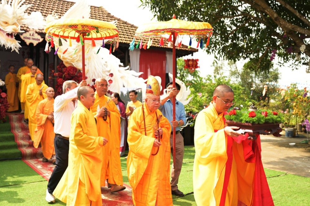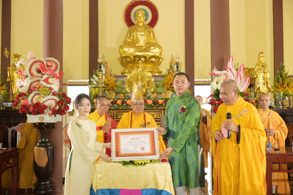 Trong không khí thiêng liêng của buổi lễ, dưới sự chứng minh của chư Tôn đức cùng sự hiện diện của họ hàng hai bên, cô dâu và chú rể đã thực hiện các nghi lễ truyền thống như lễ bái Tam bảo, lễ bái cha mẹ hai bên, trao nhẫn cưới và cùng phát nguyện trọn đời chung sống theo những nguyên tắc đạo đức mà Đức Phật đã dạy.