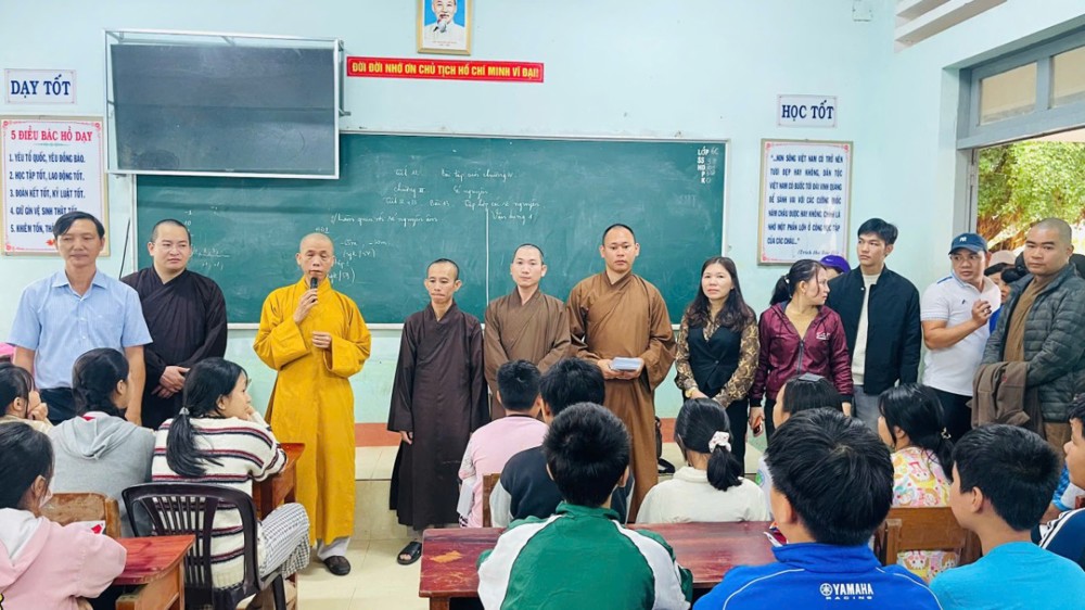Đoàn do Thượng tọa Thích Thanh Bảo – Phó thư ký, Chánh văn phòng ban Trị sự GHPGVN Tp Đà Nẵng, Trú trì chùa Cát Tường làm trưởng đoàn cùng Chư Tôn đức Tăng trú trì các chùa An Hải, Hoà Thọ, Tân Ninh, Bình An, Từ Tôn, Sơn Quang, Thanh Phước đã đến thăm, động viên và trao tặng vở, bút, tiền mặt cho 250 học sinh bị ảnh hưởng bởi lũ lụt tại trường Trung học cơ sở và Tiểu học Nguyễn Chí Thanh, Trần Phú thuộc xã Hoà Xuân Đông; trao tặng quà cho 2 điểm trường mẫu giáo tại địa phương.