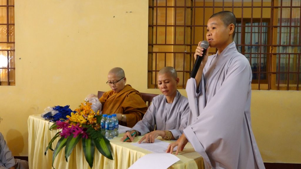 Tại Giới trường chùa Long Châu Phước Trung (Khu Du lịch núi Bà Đen, tỉnh Tây Ninh). Ban Quản giới tử đã có mặt từ rất sớm để giúp đỡ và hỗ trợ cho các giới tử làm các thủ tục. Từ 8 giờ sáng, các giới tử Ni đã tề tựu đông đủ với hành trang gồm: y, bát, tọa cụ, dụng cụ, đãy lọc nước … Ban Quản giới tử đã cẩn thận kiểm tra giấy báo trúng tuyển của từng giới tử Tỳ-kheo-ni từ trú xứ các nơi đến làm thủ tục nhập giới đàn.