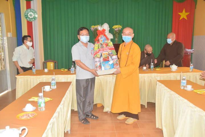 Thay mặt đoàn, ông Hồ Đức Hải tặng những phần quà ý nghĩa chúc mừng Đại lễ Phật đản đến HT. THích Niệm Thới - Trưởng BTS tỉnh và Thường trực BTS GHPGVN tỉnh Tây Ninh. Buổi tiếp đoàn thành công viên mãn trên tinh thần hoan hỷ và an lạc.