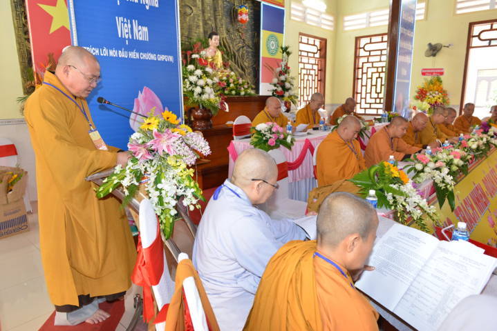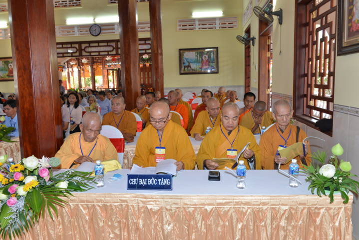 Đại hội trang nghiêm cử hành nghi thức Chào quốc Kỳ, Đạo kỳ, một phút mậc niệm, niệm Phật cầu gia bị, trên tinh thần phiên họp trù bị, BTC thống nhất cung thỉnh chứng minh Đại hội, Chủ tọa đoàn, Ban Kiểm soát, Ban Thư ký. ĐĐ. Thích Minh Hậu thay mặt Ban Kiểm soát Đại hội kiểm soát tư cách Đại biểu tham dự Đại hội.