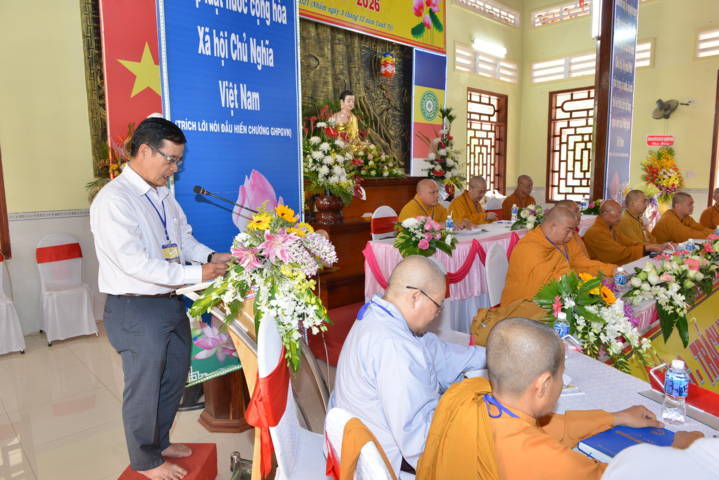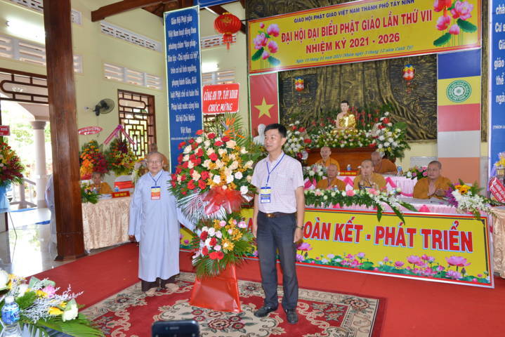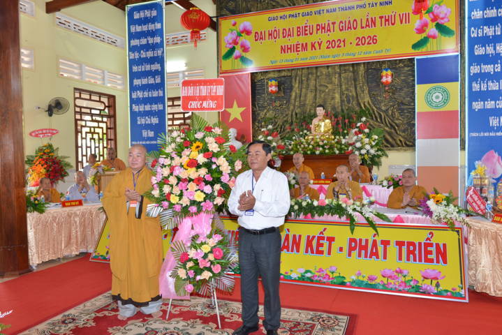 Thay lời chính quyền các cấp, ông Lê Thế Hiền phát biểu chúc mừng và ghi nhận sự đóng góp an sinh xã hội của BTS GHPGVN TP. Tây Ninh và Tăng Ni, Phật tử toàn thành phố trong thời gian qua. Hy vọng trong nhiệm kỳ mới BTS GHPGVN TP. Tây Ninh luôn đồng hành và thực hiện chủ trương chính sách pháp luật nhà nước. AF430
