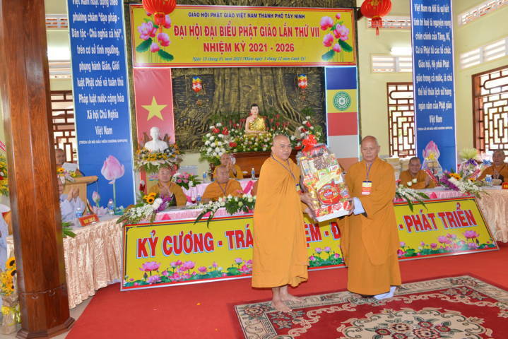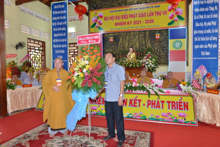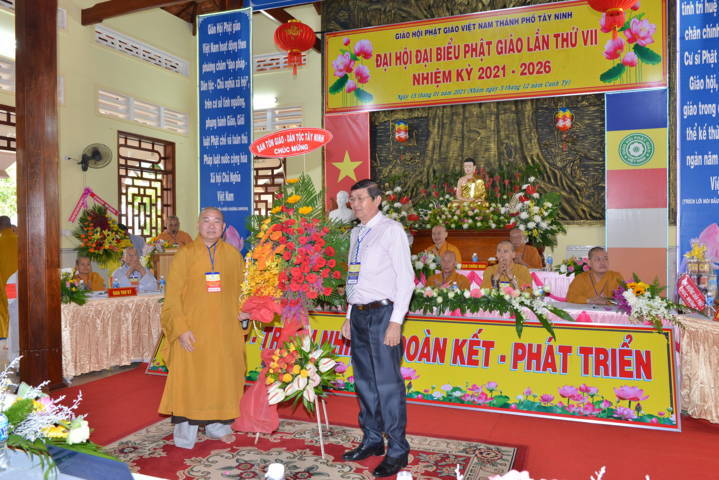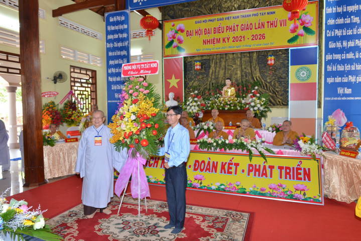 Dịp này, BTC đón nhận nhiều lẵng hoa cao quý của Đảng, chính quyền các cấp chúc mừng Đại hội Đại biểu GHPGVN TP. Tây Ninh, nhiệm kỳ 2021 - 2026.
