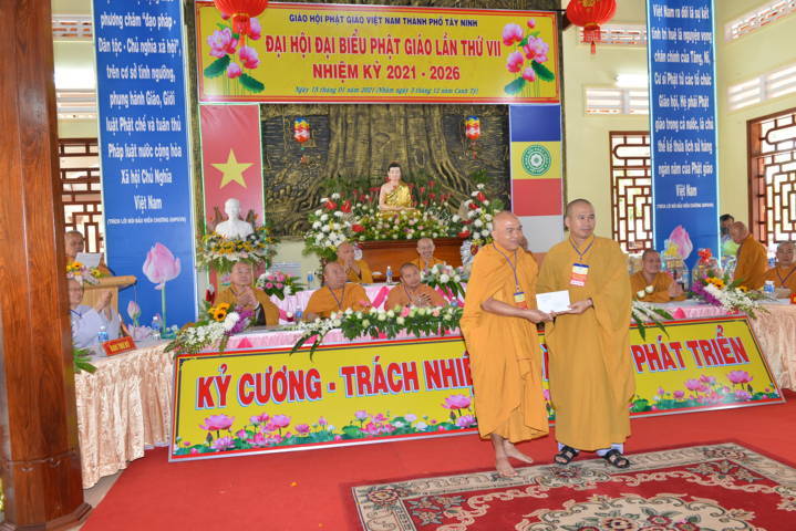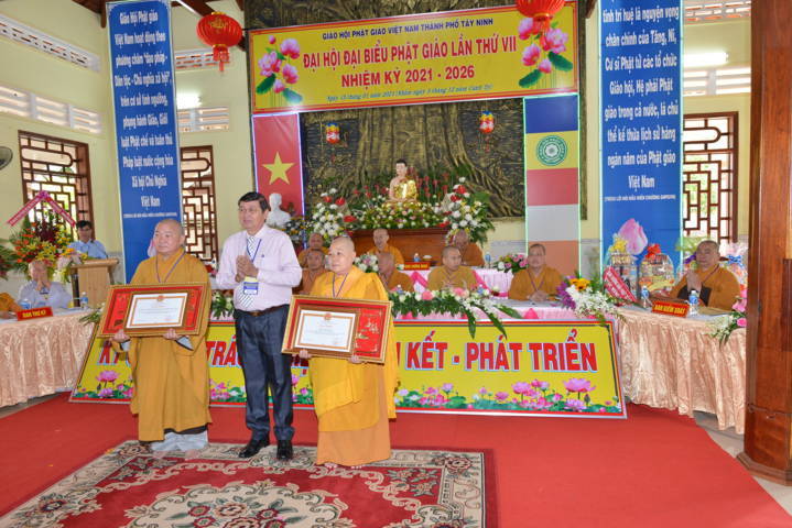 Tại Đại hội, Thường trực BTS GHPGVN tỉnh quyết định tặng bằng tuyên dương công đức cho tập thể BTS GHPGVN TP. Tây Ninh và các cá nhân Tăng Ni thuộc GHPGVN TP. Tây Ninh đã có những hoạt động Phật sự xuất sắc trong nhiệm kỳ cũ.
