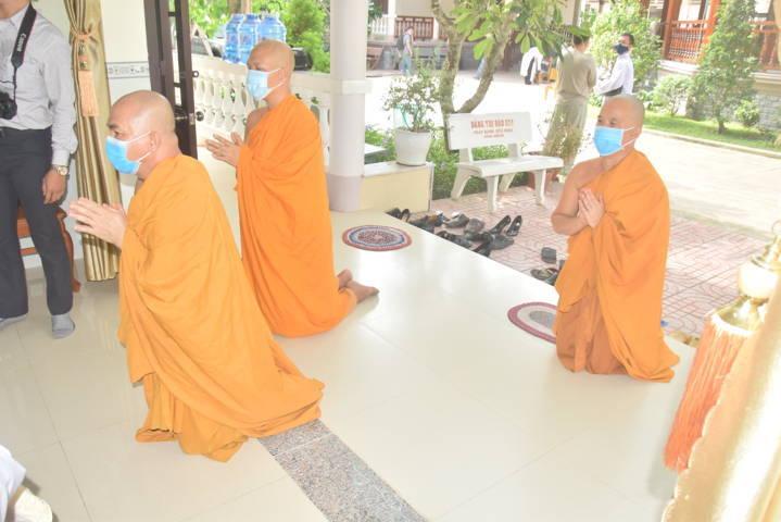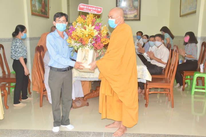 Đại đức Thích Minh Tựu - Tân Trụ trì Tịnh xá Ngọc Thạnh phát nguyện nhận lãnh trọng trách Trụ trì và đón nhận lẵng hoa, phần quà chúc mừng của chính quyền các cấp.