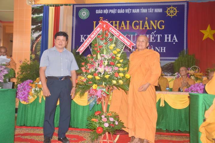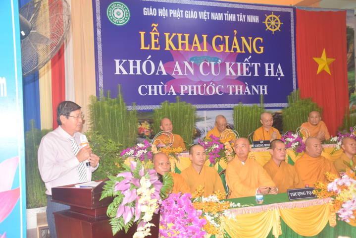 Ông Trần Minh Nay, đại diện Chính quyền phát biểuHT. Thích Huệ Tâm - Ủy viên HĐTS, Phó Trưởng ban Thường trực BTS GHPGVN tỉnh, thay mặt ban Chứng minh có lời Đạo từ, sách tấn chư Hành giả an cư phải luôn luôn nỗ lực tinh tấn tu học trong ba tháng Hạ trường.