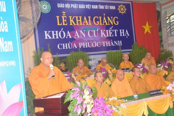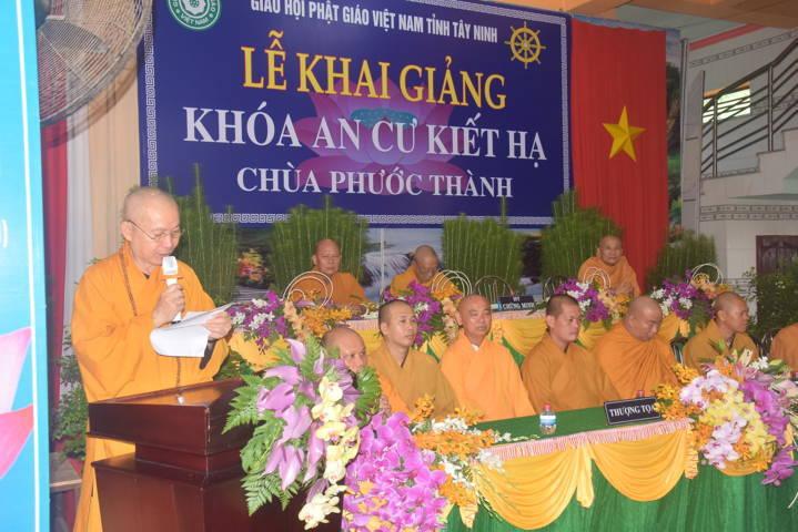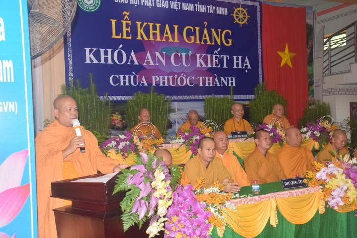 HT. Thích Niệm Thới phát biểu khai mạcĐĐ. Thích Thiện Thức - Phó Ban kiêm Chánh Thư ký BTS GHPGVN tỉnh, thay lời BTC tuyên đọc quyết định Cung an Ban Tổ chức, Ban Chức sự, Ban Giảng huấn Trường hạ Tăng (chùa Phước Thành) và Trường hạ Ni (chùa Niết Bàn).
