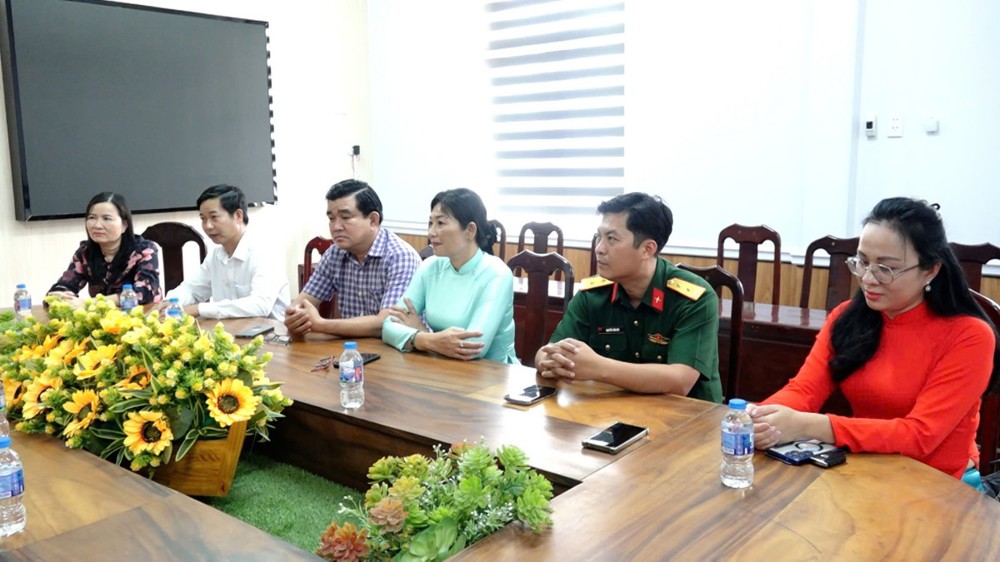 Thân mật tiếp đoàn có bà Phùng Cẩm Loan – Bí thư Đảng ủy, Chủ tịch HĐND xã Mỹ Hạnh, cùng đại diện các ban, ngành, đoàn thể địa phương.