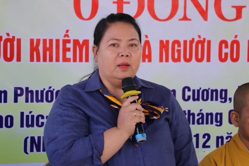 Thay mặt các cấp lãnh đạo chính quyền địa phương, bà Trương Thị Ngọc Giàu ghi nhận và biểu dương những đóng góp tích cực của Sư cô Trụ trì và chùa Tân Phước trong việc đồng hành cùng địa phương thời gian qua, đặc biệt là trong công tác an sinh xã hội.