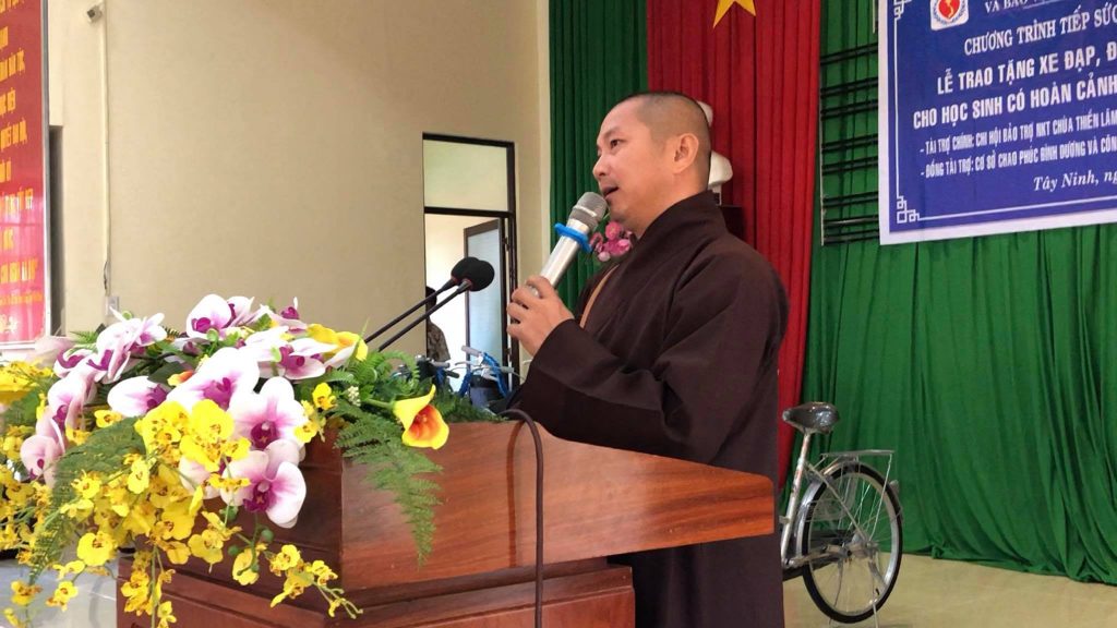 Đại diện Ban trụ trì chùa Thiền Lâm (Gò Kén) Tây Ninh Đại đức Thích Thiện Nghĩa cũng đã chúc mừng, chia sẻ và động viên gia đình bà cố gắng lao động sản xuất, ổn định cuộc sống. Nguyện cầu mười phương chư Phật, chư Bồ Tát, chư Hiền Thánh Tăng hộ trì cho quý vị cùng gia quyến được an lạc, vạn sự cát tường như ý và Nhà nhà luôn được sống an vui trong ánh hào quang của đức Phật.