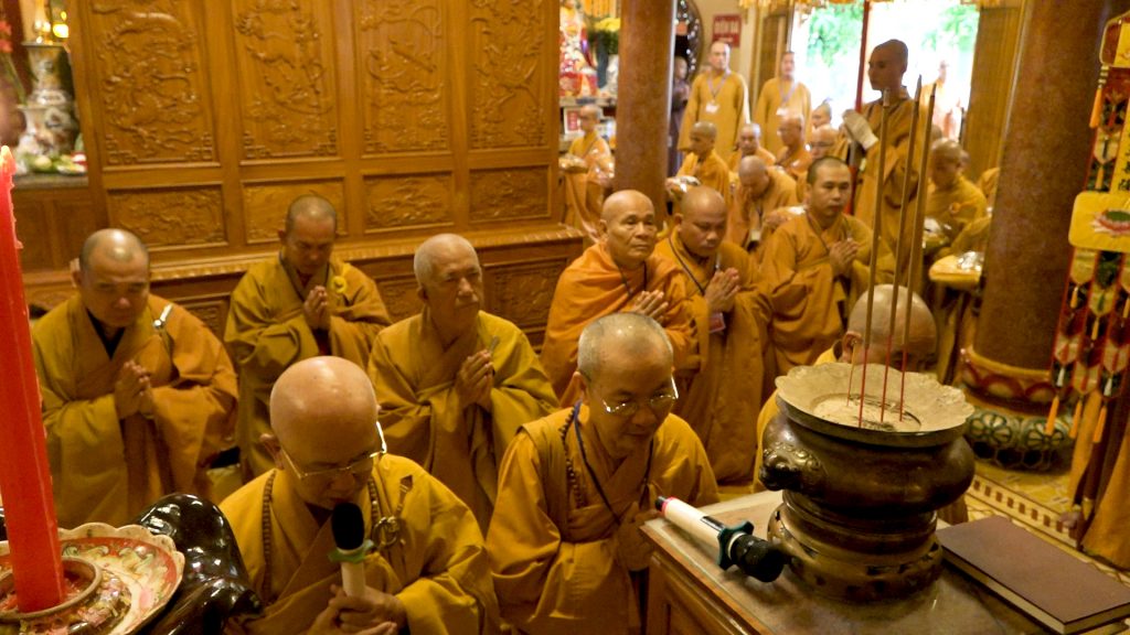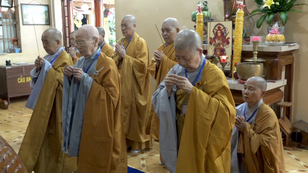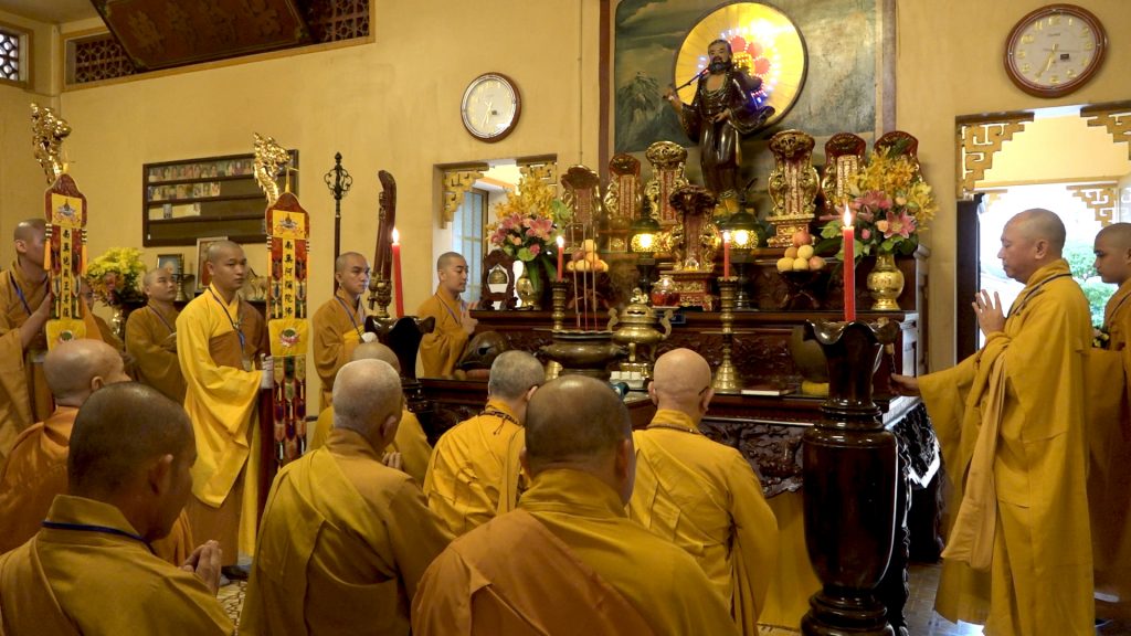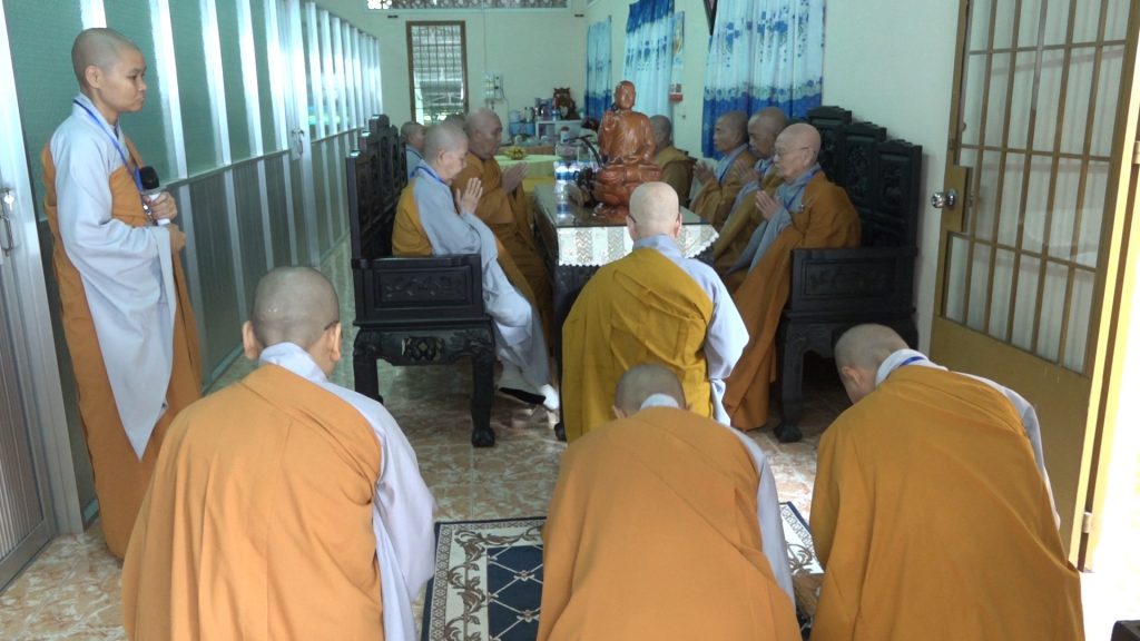 Sau khi nghi thức tấn đàn tại Giới trường Long Châu Phước Trung hoàn thành viên mãn, Ban tổ chức Giới trường Ni đã hướng dẫn các Tân Tỳ-kheo Ni theo gót chư vị Hội đồng Thập sư Ni vân tập về Giới trường chùa Linh Sơn Phước Trung để đảnh lễ Hội đồng Thập sư Tăng.