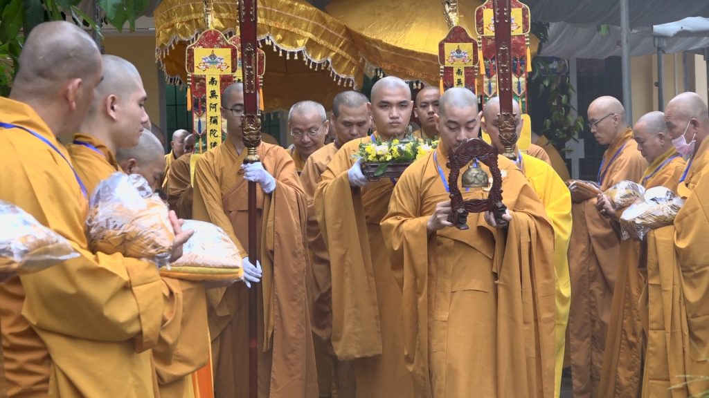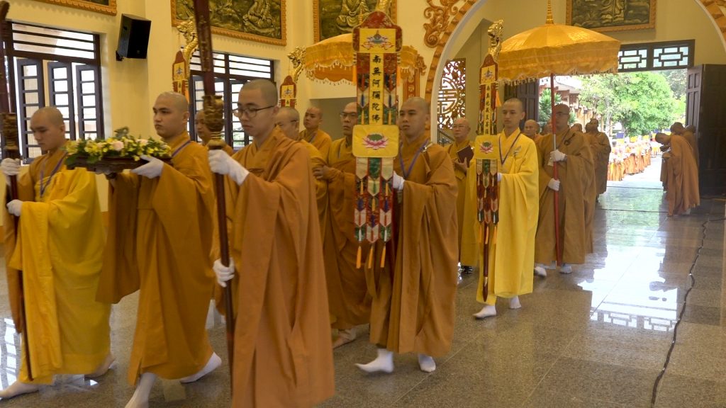 Trong không khí thành kính trang nghiêm các giới tử trân trọng khoác lên mình những mảnh y ruộng phước vừa được lãnh thọ do chư Tôn đức truyền trao trong niềm hân hoan đầy hỷ lạc. Giờ phút này đây, giới thể đã châu viên, các giới tử đã thật sự dự vào hàng “Thích tử Như Lai, nối dòng dõi Thánh”, bắt đầu bước vào con đường dấn thân phụng sự, thừa hành mạng mạch Như Lai, “thượng báo tứ trọng ân, hạ tế tam đồ khổ”.