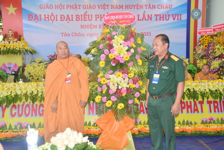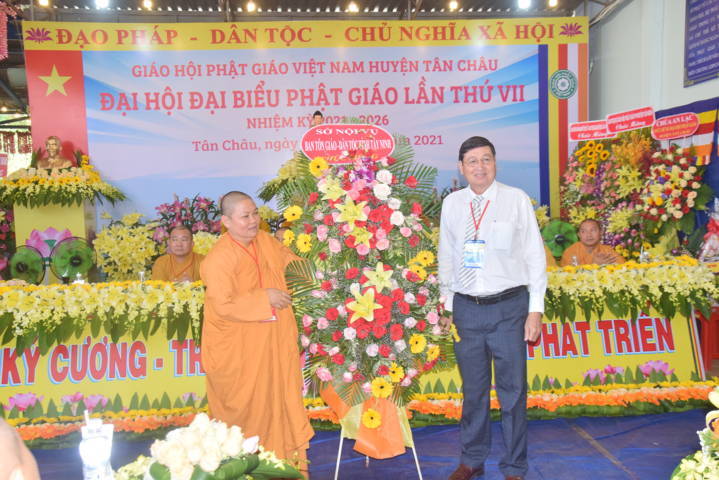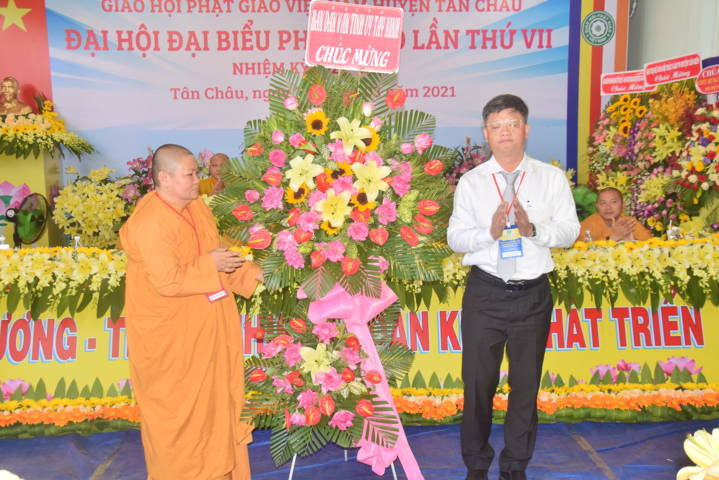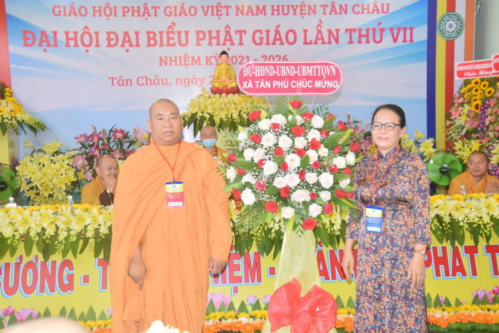 Phát biểu chúc mừng và ghi nhận sự đóng góp an sinh xã hội của BTS GHPGVN huyện Tân Châu, Tăng Ni, Phật tử toàn huyện Tân Châu trong thời gian qua, bà Nguyễn Thị Phượng - UV Ban chấp hành Huyện ủy, Phó Chủ tịch UBND huyện Tân Châu cũng hy vọng BTS GHPGVN huyện Tân Châu tiếp tục đồng hành và thực hiện chủ trương chính sách pháp luật nhà nước trong nhiệm kỳ mới.