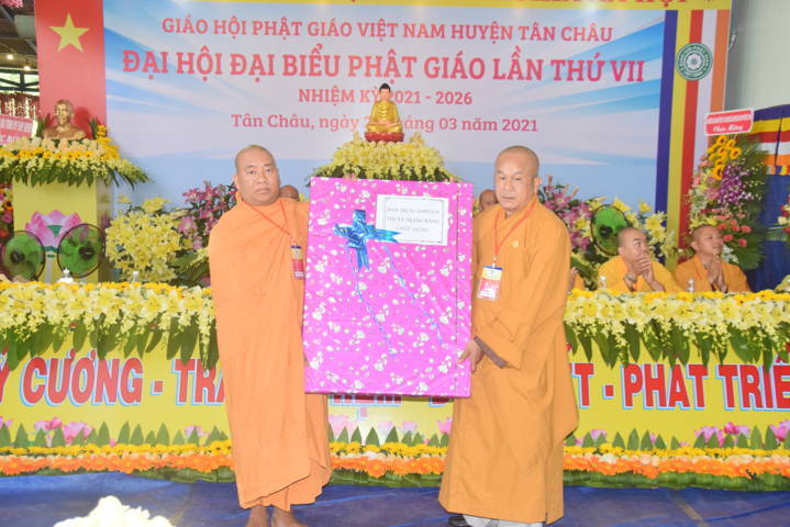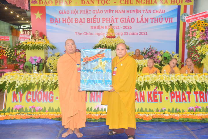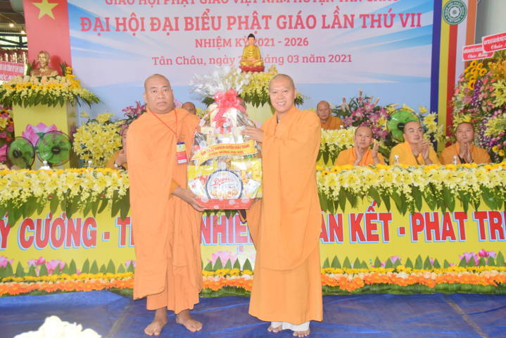 Tuyên đọc diễn văn bế mạc Đại hội, ĐĐ. Thích Thiện Trí Minh Trực thay mặt BTC phát biểu cảm tạ tri ân sự có mặt tham dự của chư Tôn đức Tăng Ni, chính quyền các cấp và quý Phật tử đã góp phần cho thành công của Đại hội Đại biểu GHPGVN huyện Tân Châu, nhiệm kỳ 2021 - 2026.