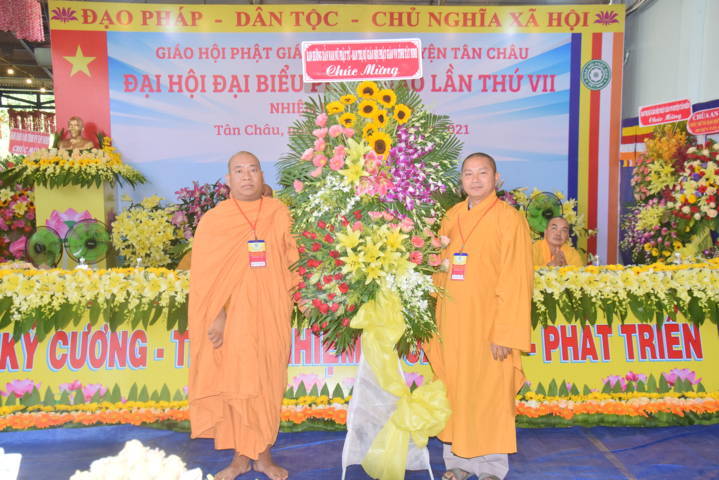 BTC đón nhận được nhiều lẵng hoa cao quý của Đảng/chính quyền các cấp chúc mừng Đại hội Đại biểu GHPGVN huyện Tân Châu nhiệm kỳ 2021 - 2026.