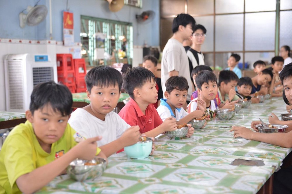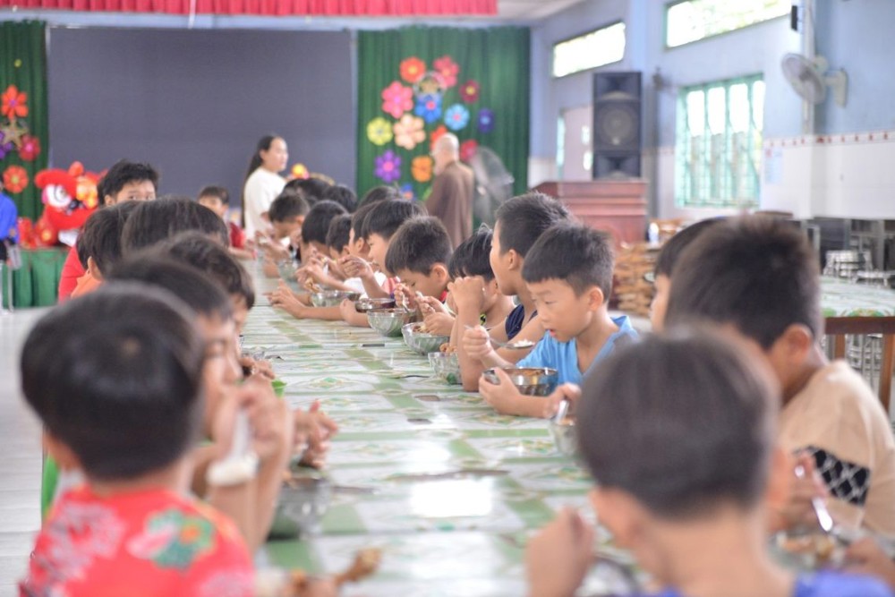 Trước khi đêm hội diễn ra, các em đã được thưởng thức những suất ăn chiều yêu thương do Ban Tổ chức nấu ăn.