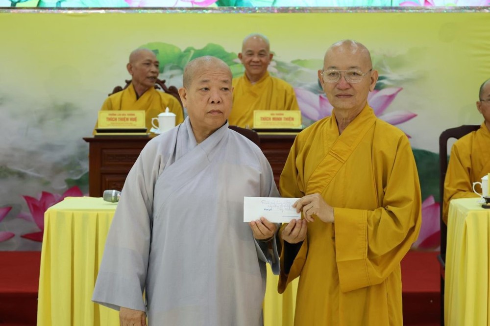 HT. Thích Minh Thiện và NS. Thích Nữ Diệu Phước đã trao tịnh tài hỗ trợ để tiếp tục xây dựng và hoàn thiện Trụ sở GHPGVN tỉnh Tây Ninh.