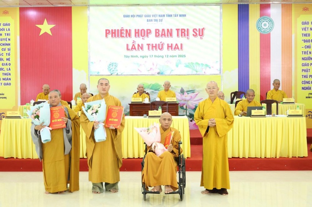 Sáng ngày 17/12/2025 (nhằm ngày 28/10 năm Ất Tỵ), tại Hội trường Trụ sở GHPGVN tỉnh Tây Ninh diễn ra phiên họp lệ kỳ tháng 10 năm Ất Tỵ, tổng kết Phật sự và triển khai phương hướng hoạt động tháng mới. Trong phiên họp đã trao quyết định bổ nhiệm Ban Quản trị đến 20 cơ sở tự viện trực thuộc Phật giáo tỉnh.