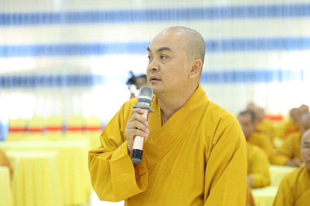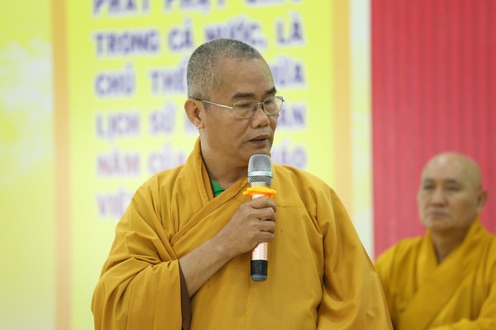 ĐĐ. Thích Thiện Thức – Ủy viên HĐTS, Phó Trưởng ban Thường trực BTS GHPGVN tỉnh phát biểu đúc kết phiên họp với 6 nội dung trọng tâm, kính trình chư Tôn đức Chứng minh và các thành viên tham dự thông qua.