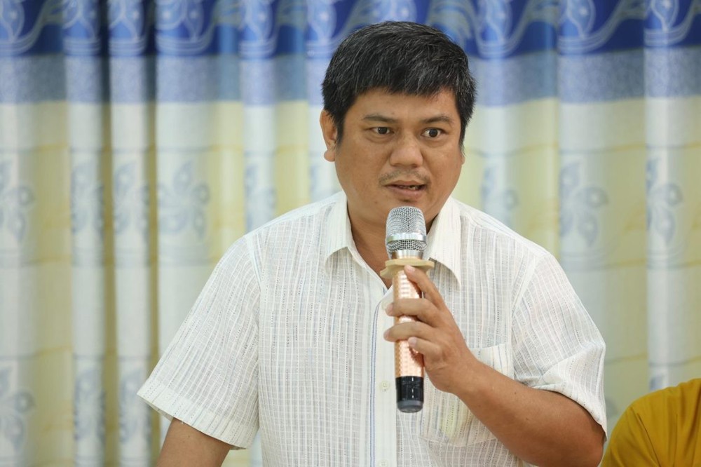 Cư sĩ Lệ Kiệt – Phó Thư ký BTS GHPGVN tỉnh báo cáo công tác tài chính Khóa Tập huấn Hành chánh Giáo hội năm 2025 và chương trình cứu trợ đồng bào lũ lụt tại các tỉnh miền Trung.