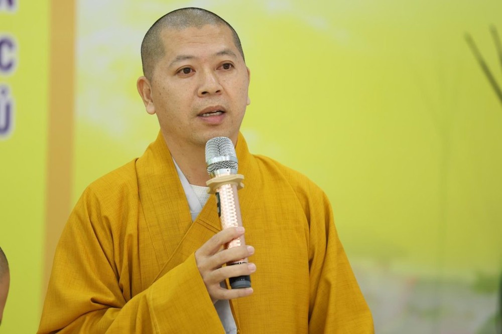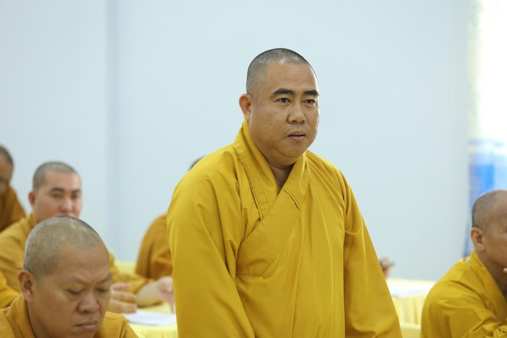 ĐĐ. Thích Thiện Danh – Phó Thư ký BTS GHPGVN tỉnh triển khai văn bản của Trung ương Giáo hội về việc rà soát, thống kê và lập danh mục các thông tin, số liệu về chức sắc, chức việc, nhà tu hành tôn giáo. Đại đức đã thông tin một số vấn đề liên quan đến quá trình ứng dụng công nghệ số trong công tác Giáo hội.