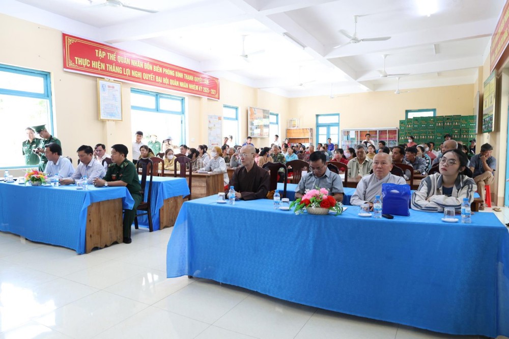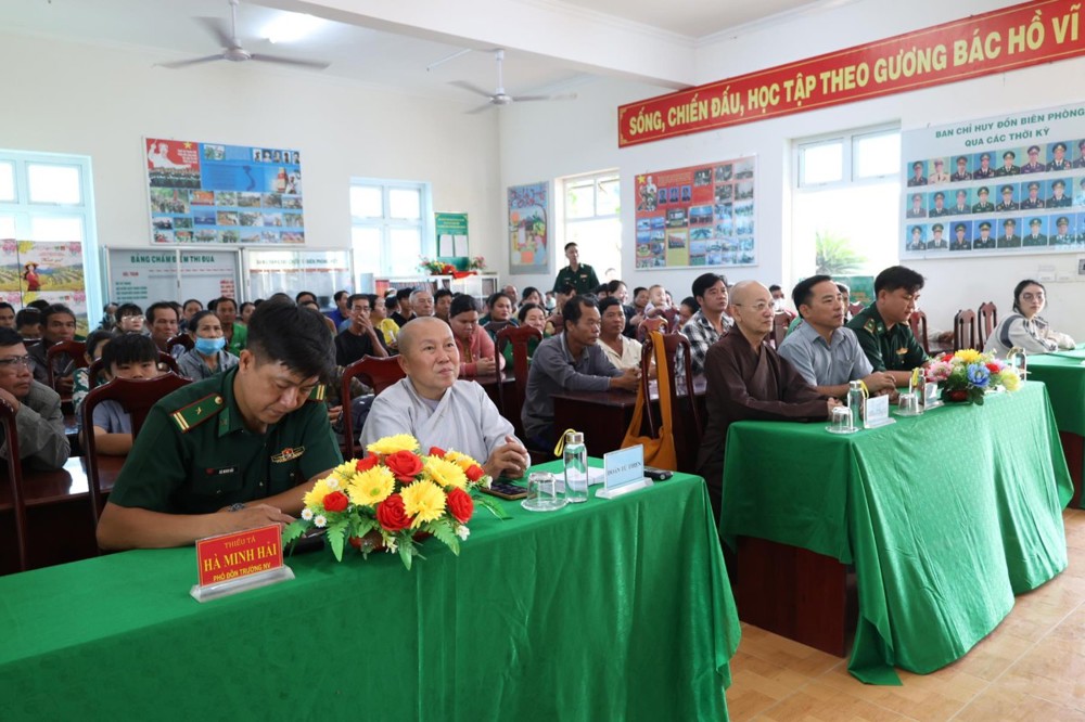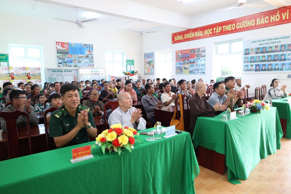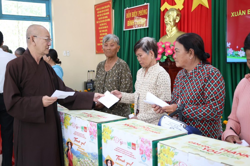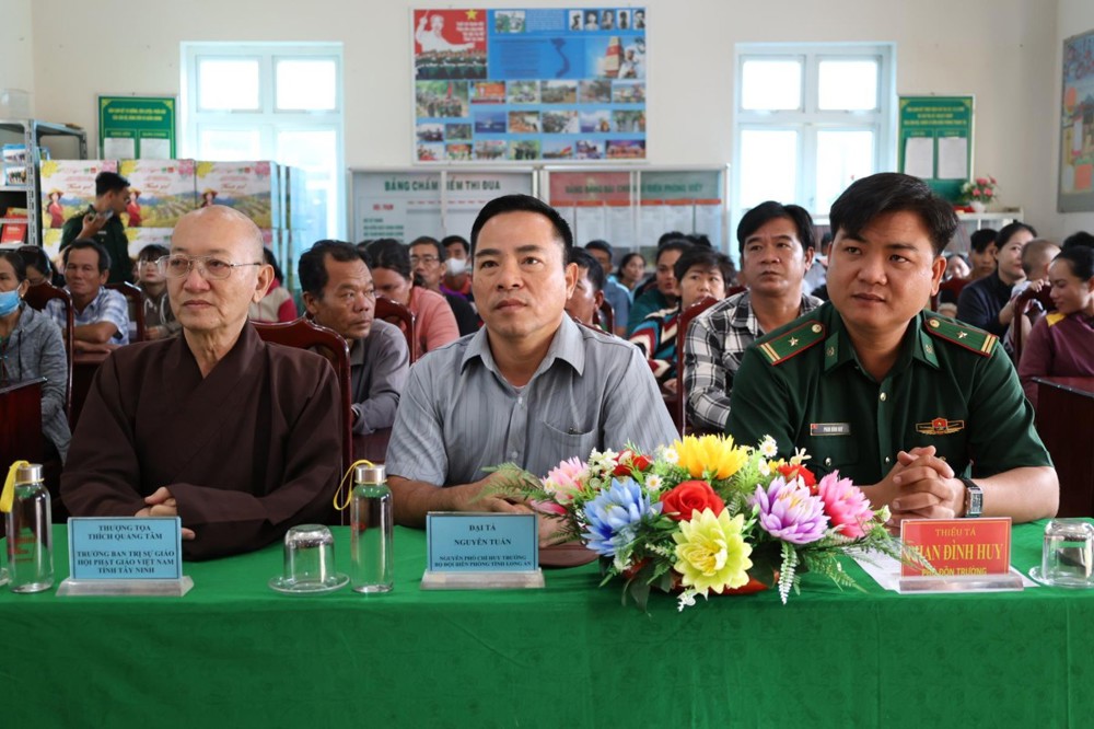 Tham dự buổi phát quà có: TT. Thích Quảng Tâm – UV HĐTS, Phó ban Từ thiện Xã hội TW, Trưởng BTS GHPGVN tỉnh Tây Ninh; NS. TN. Diệu Huệ – UVTT BTS GHPGVN tỉnh; ông Nguyễn Thanh Phú – Chủ tịch UBMTTQVN xã Bình Hiệp; ông Nguyễn Tuân – Nguyên Phó Chỉ huy Trưởng Bộ đội Biên phòng tỉnh Long An; Thiếu tá Phan Đình Huy – Phó Đội trưởng Đội Biên phòng Thạnh Trị; cùng đại diện mạnh thường quân.